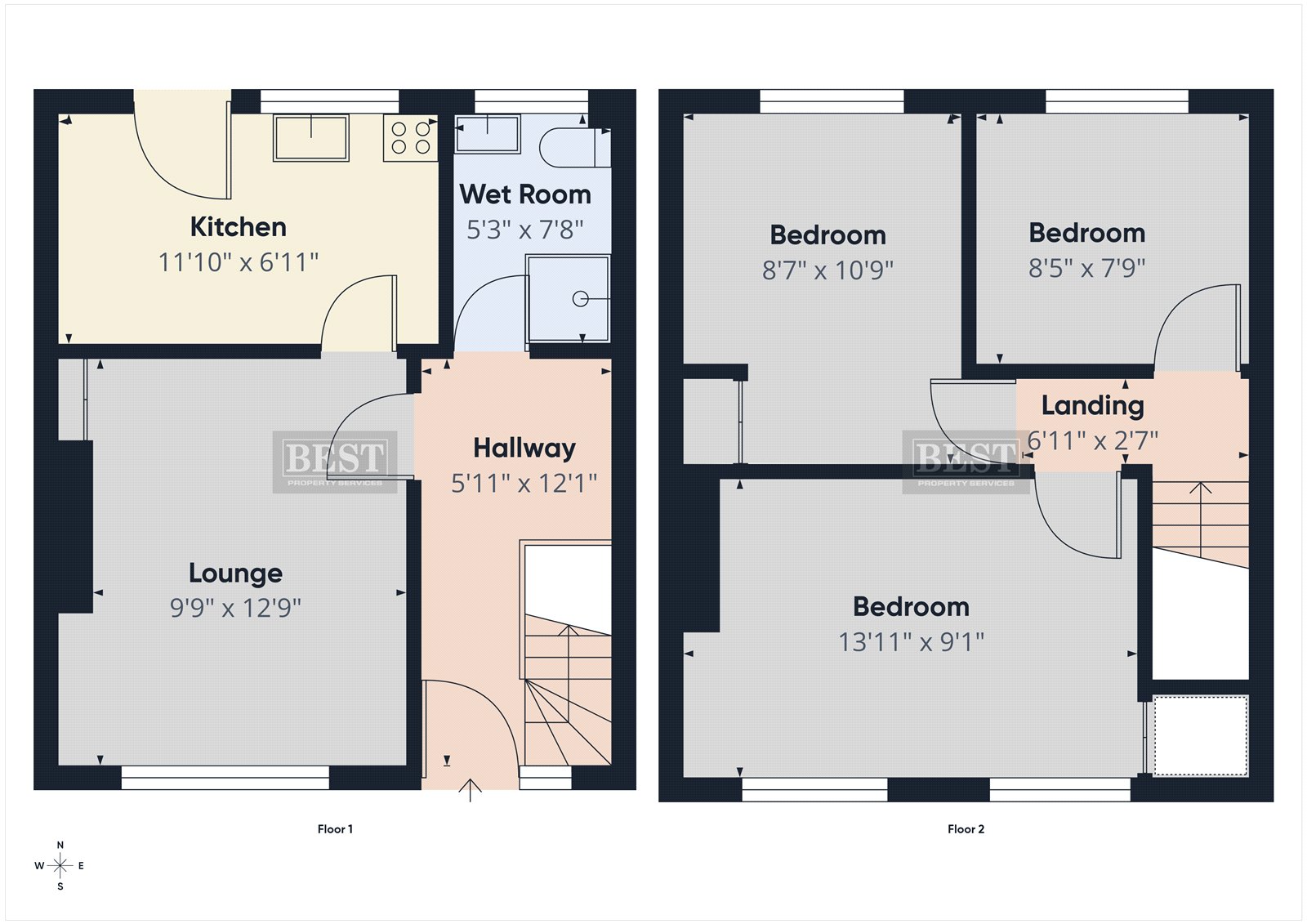 The ground floor accommodation comprises of an entrance hall with carpet flooring. The lounge is positioned to the front of the property and features a fireplace with an electric fire inset, along with carpet flooring. To the rear of the property is the kitchen, fitted with a range of upper and lower level units and plumbed for a washing machine. Also located on the ground floor is a wet room which includes a three-piece suite with an electric shower.