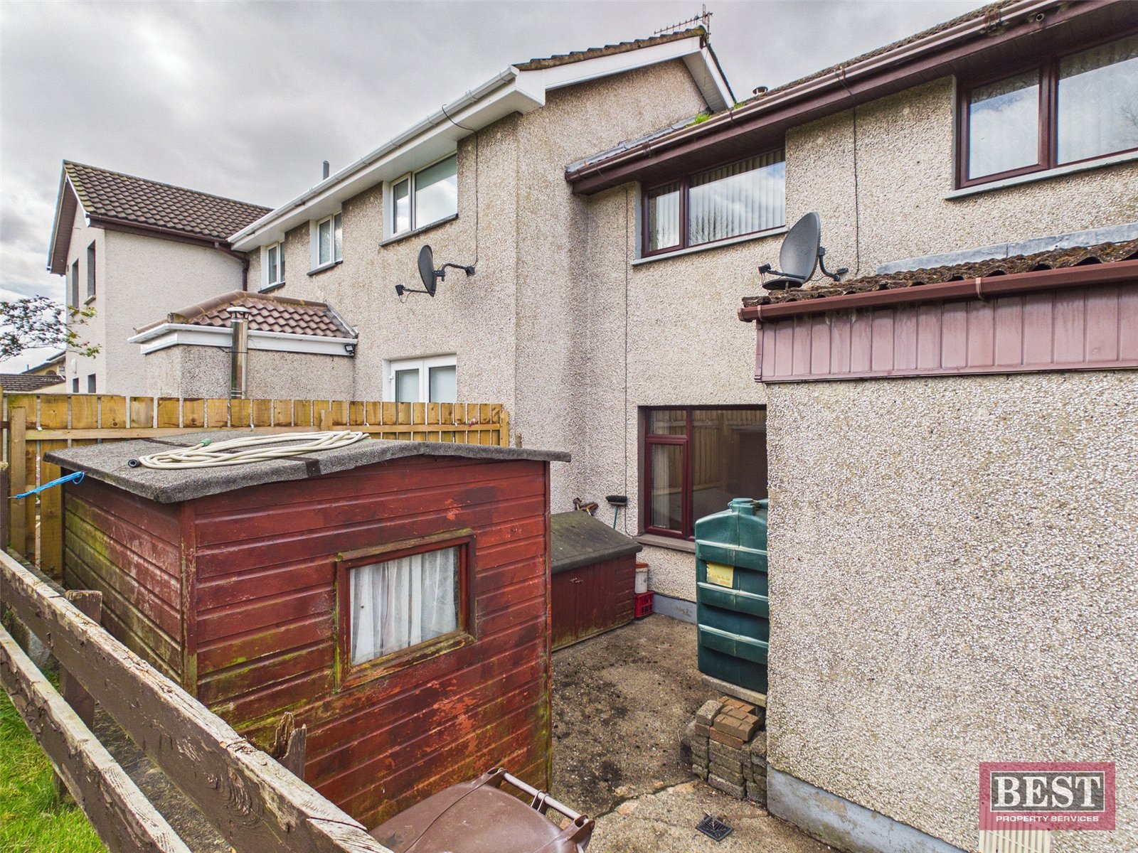Best Property Services are pleased to welcome to the market this well-presented four bedroom mid-terrace property situated in a popular residential area of Newry. Offering spacious and practical accommodation throughout, the property benefits from low maintenance outdoor areas and convenient access to local amenities. Internally, the property comprises an entrance porch with tiled flooring leading into a bright hallway with laminate flooring and staircase to the first floor. The main lounge is positioned to the front and is finished with carpet flooring, creating a comfortable living space. To the rear, the kitchen/dining area is fitted with a range of upper and lower units and includes a breakfast bar, ideal for everyday use. A rear hallway just off the kitchen is plumbed for a washing machine and provides access to the enclosed rear garden. There is also a convenient downstairs WC located just off the hallway. Upstairs, the property offers four bedrooms, including three doubles and one single, all with carpet flooring. The family bathroom is fully tiled and fitted with a three-piece suite including a shower over bath, with a hotpress located just outside for additional storage. Externally, the property benefits from an enclosed front garden which is paved for ease of maintenance, with steps leading up to the entrance. To the rear, there is a fully enclosed garden comprising a concrete yard, raised lawn area and a timber shed, providing a private and functional outdoor space.