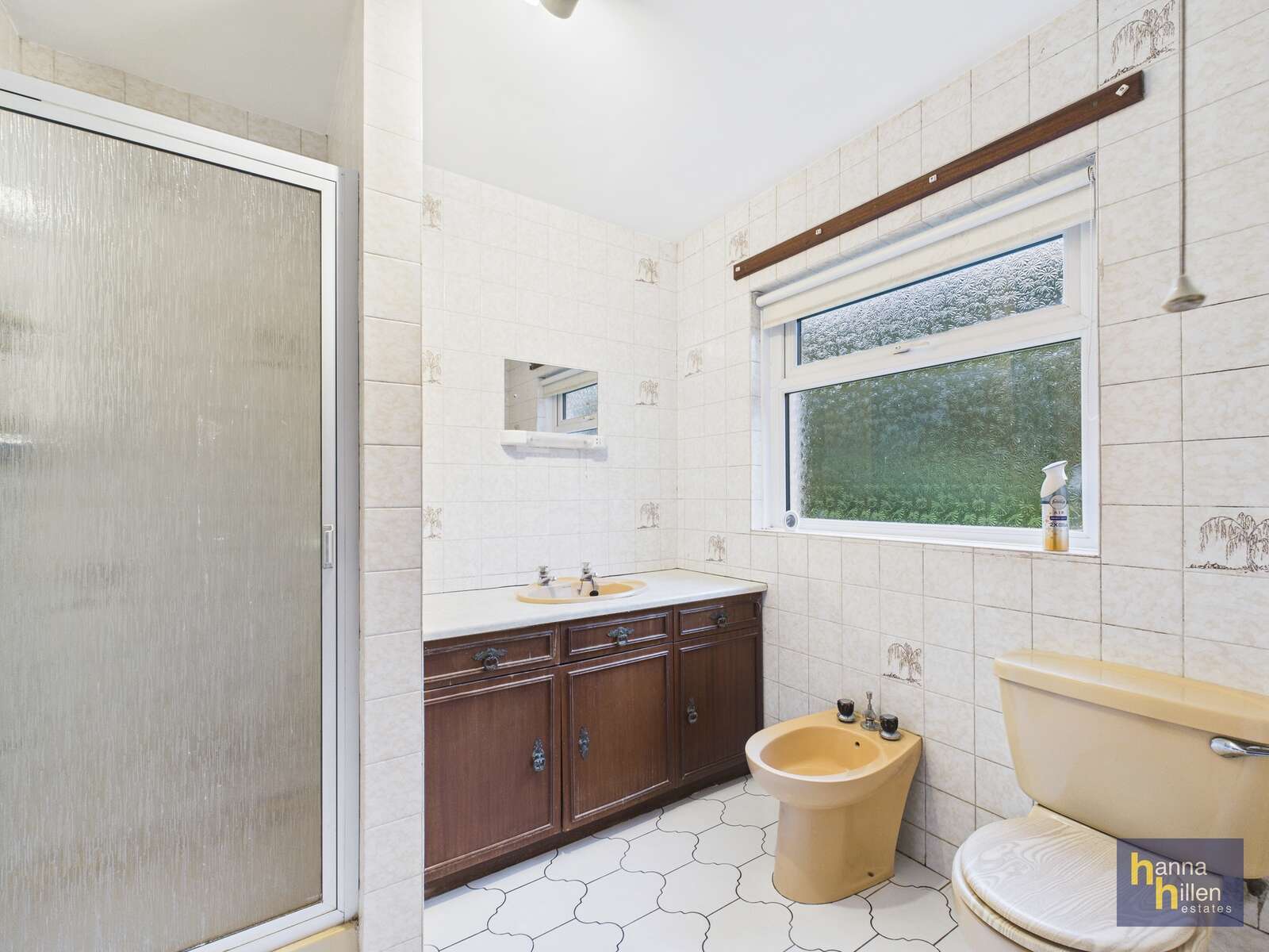 Coloured suite. Tiled walk in shower. Radiator. Tiled walls & floor.