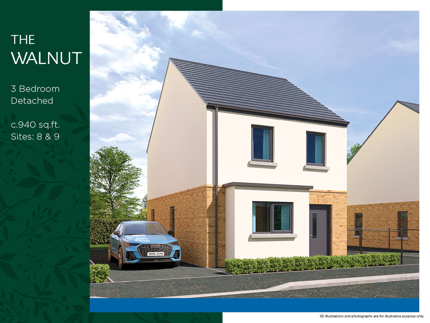 Site 8, Detached 3 Bedroom House, House type The Walnut, c. 940 sq. ft. Guide Price £250,000.