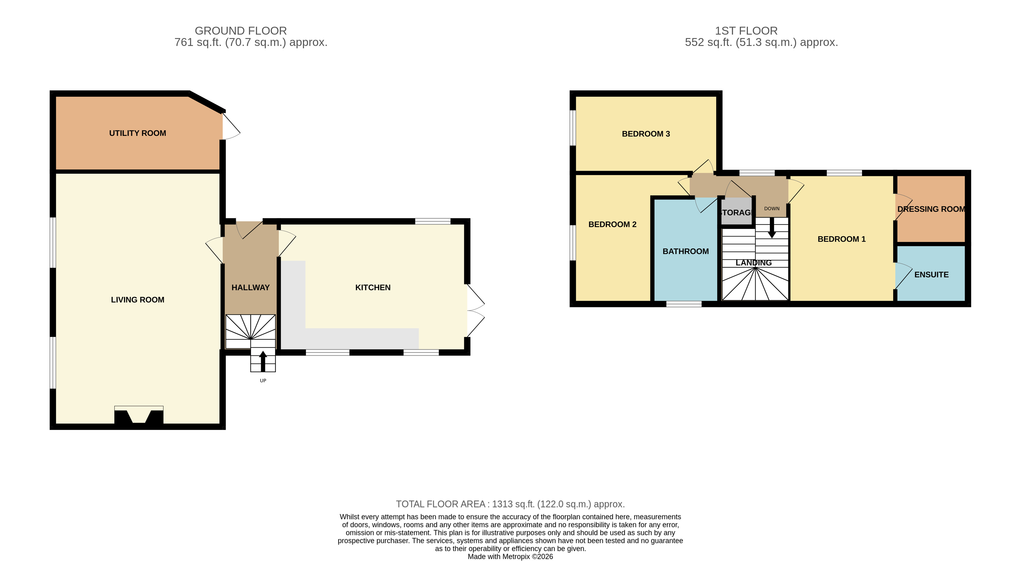 The property comprises a bright and welcoming living room, a well-appointed kitchen, and a separate utility room, providing excellent everyday functionality. One of the bedrooms benefits from an ensuite and a walk-in wardrobe, adding an excellent level of comfort and convenience, while the remaining bedrooms are well proportioned and versatile for family living, guests, or home working.