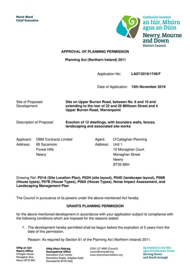 Burren Village is a much sought after residential location with excellent local schools and Gaelic Football Club in close proximity to Warrenpoint Town Centre, golf club and shore front. This unique site extends to 1.8 acres with frontage of 35metres onto Upper Burren Road and full planning permission. Interested parties can access the full application on the NI Planning Portal, ref: LA07/2019/1748/F. Permission was granted on the14th September 2022 for 12 residential units consisting of 10 semi-detached properties and 2 further detached dwellings. For more information contact HMK Property on 02890397712.