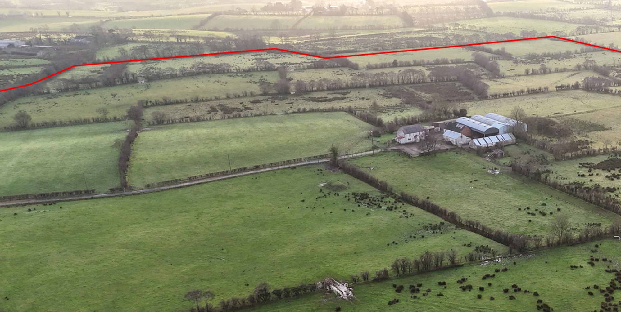 The lands surround the farmyard and extend to c. 63.6 acres. Fields are bounded by thick, mature hedgerows, well fenced and watered in part by a mains and natural supply. The lands are all under grass at present with some arable fields which would benefit from improvement, Fields have good access from an intersecting lane with several fields fronting the A8. BPS entitlements available by separate negotiation.