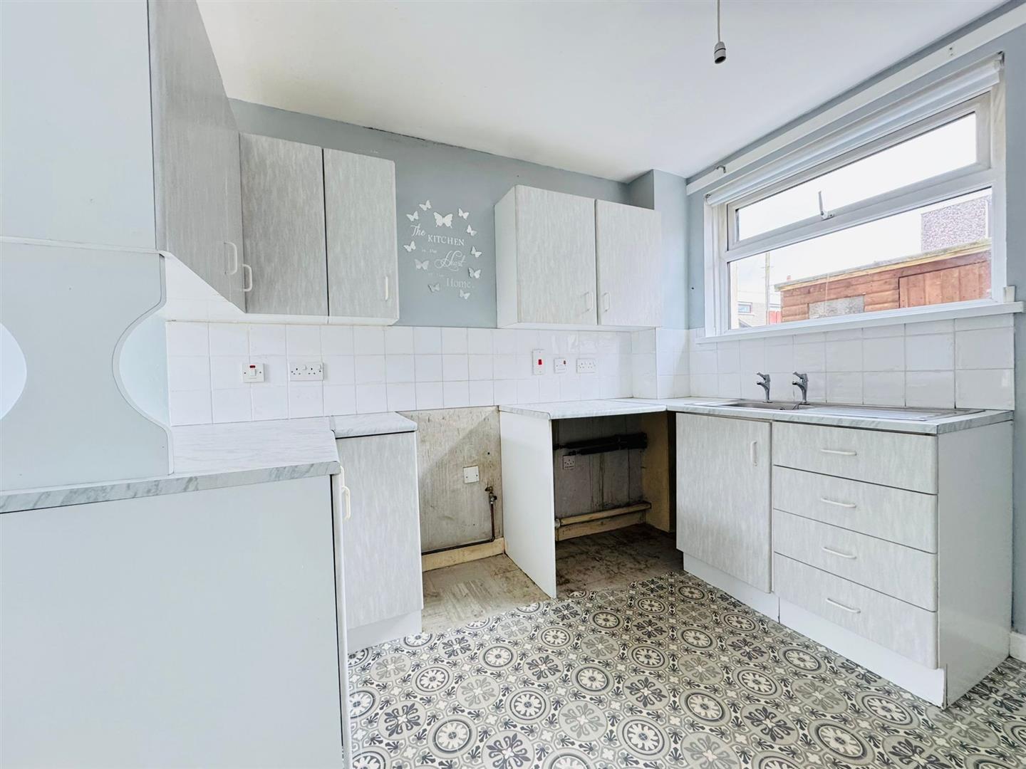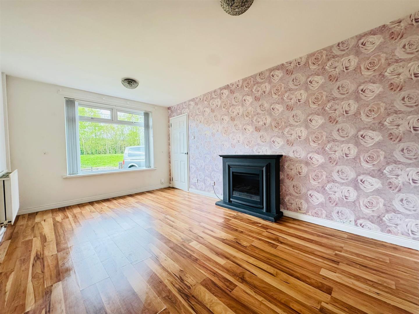 Inside the accommodation comprises; entrance hall also with access to rear, lounge with attractive mock fireplace and wood laminate flooring and a separate fitted kitchen / diner with space for appliances.