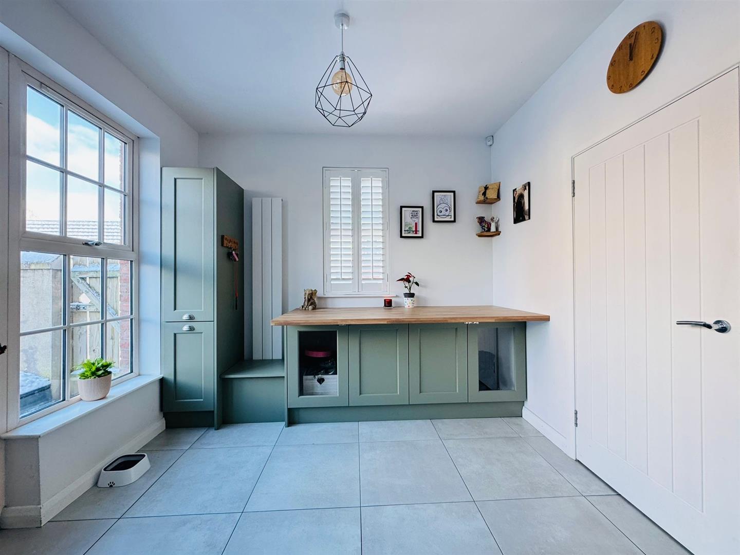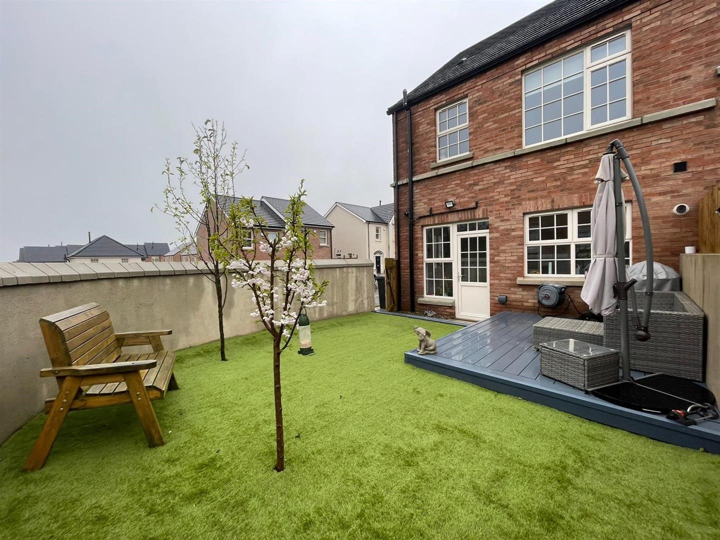 Outside there is a double width pebbled driveway at rear for ample parking, garden to side in lawn and a fully enclosed garden to rear in artificial grass with feature composite decking area.