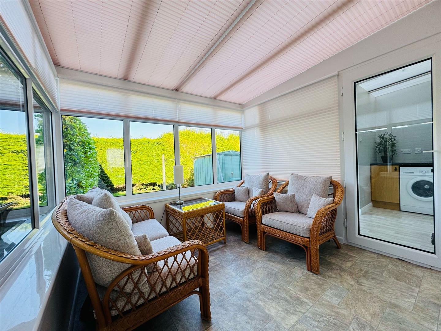 The accommodation comprises entrance hall, lounge with feature fireplace and open to a dining room with PVC double glazed sliding patio doors to a conservatory offering access to a utility area and downstairs WC. Also on the ground floor is a fitted kitchen with space for appliances.