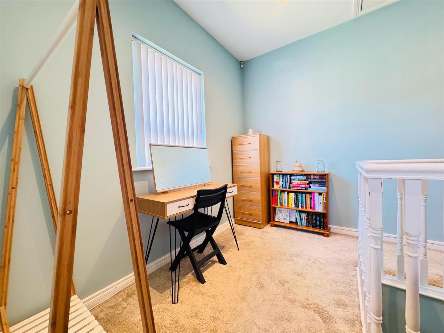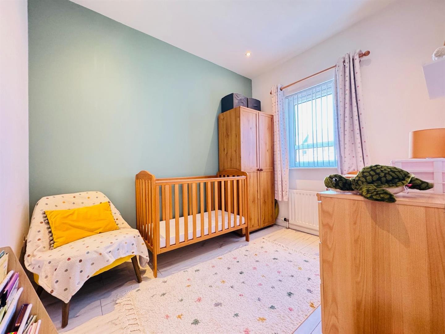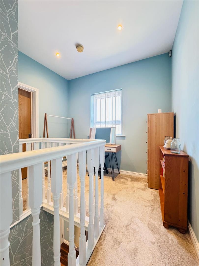 Upstairs there are two bedrooms and a modern bathroom with white suite
