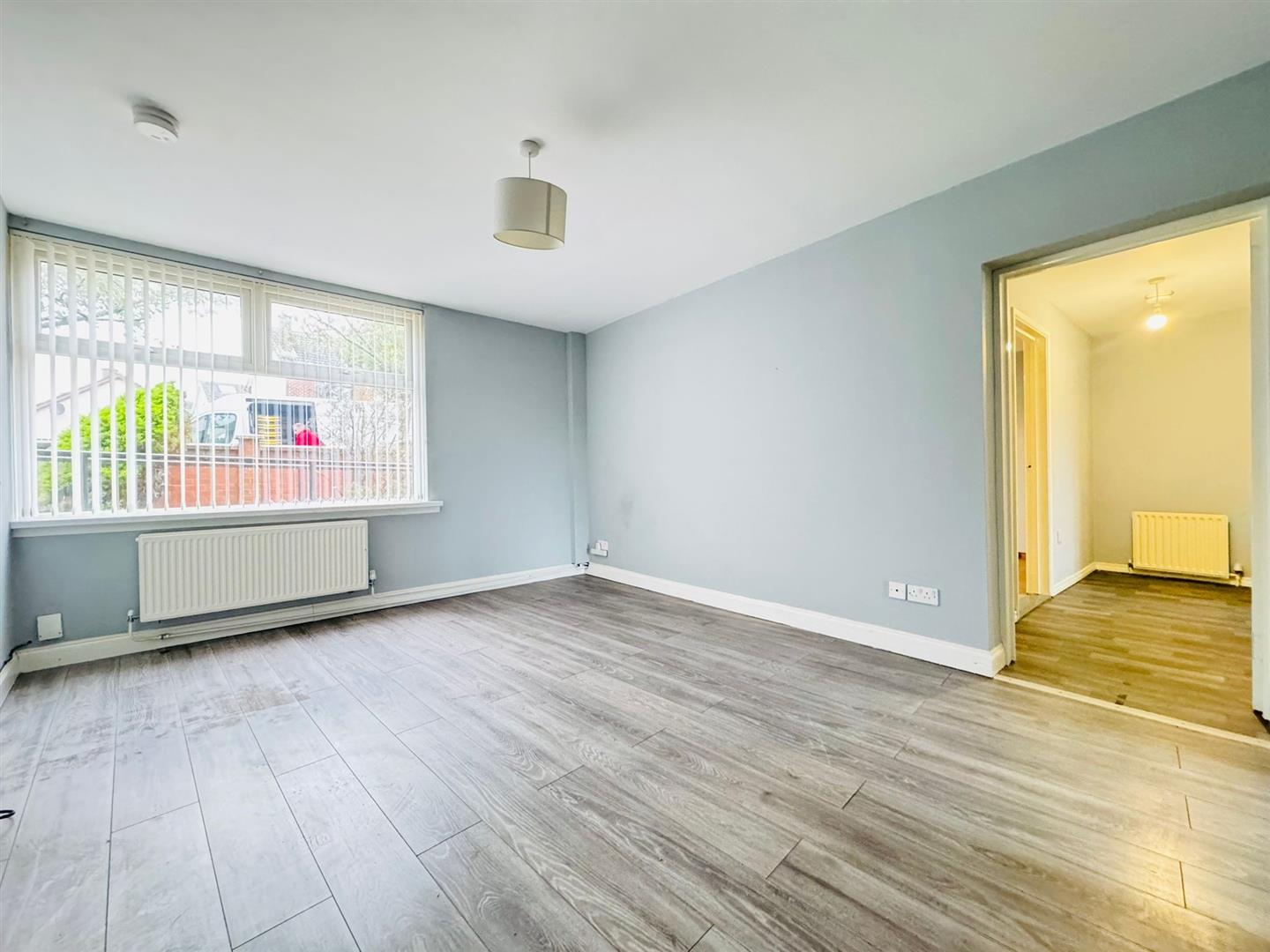 Wood laminate flooring, radiator, pvc double glazed doors to front