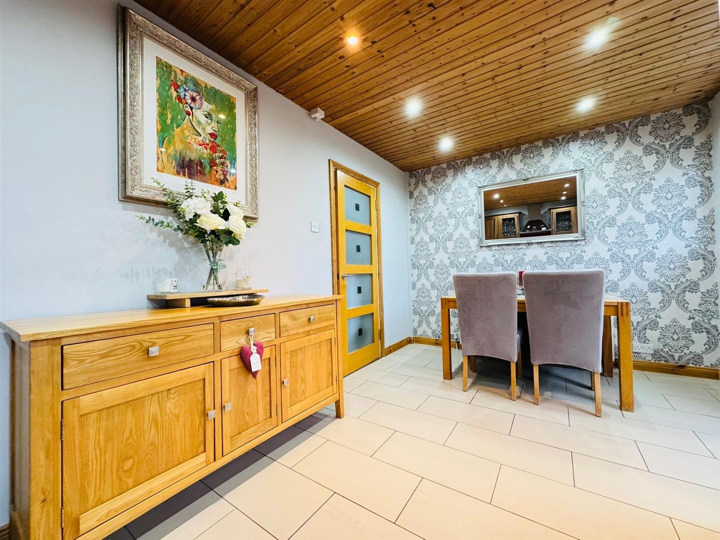 Modern range of high and low level fitted units with Formica worktops. Basin and a half stainless steel sink unit, cooker space, stainless steel extractor fan. Integrated fridge / freezer, washing machine and dishwasher. Tiled floor, radiator, under stairs storage, pvc double glazed back door.