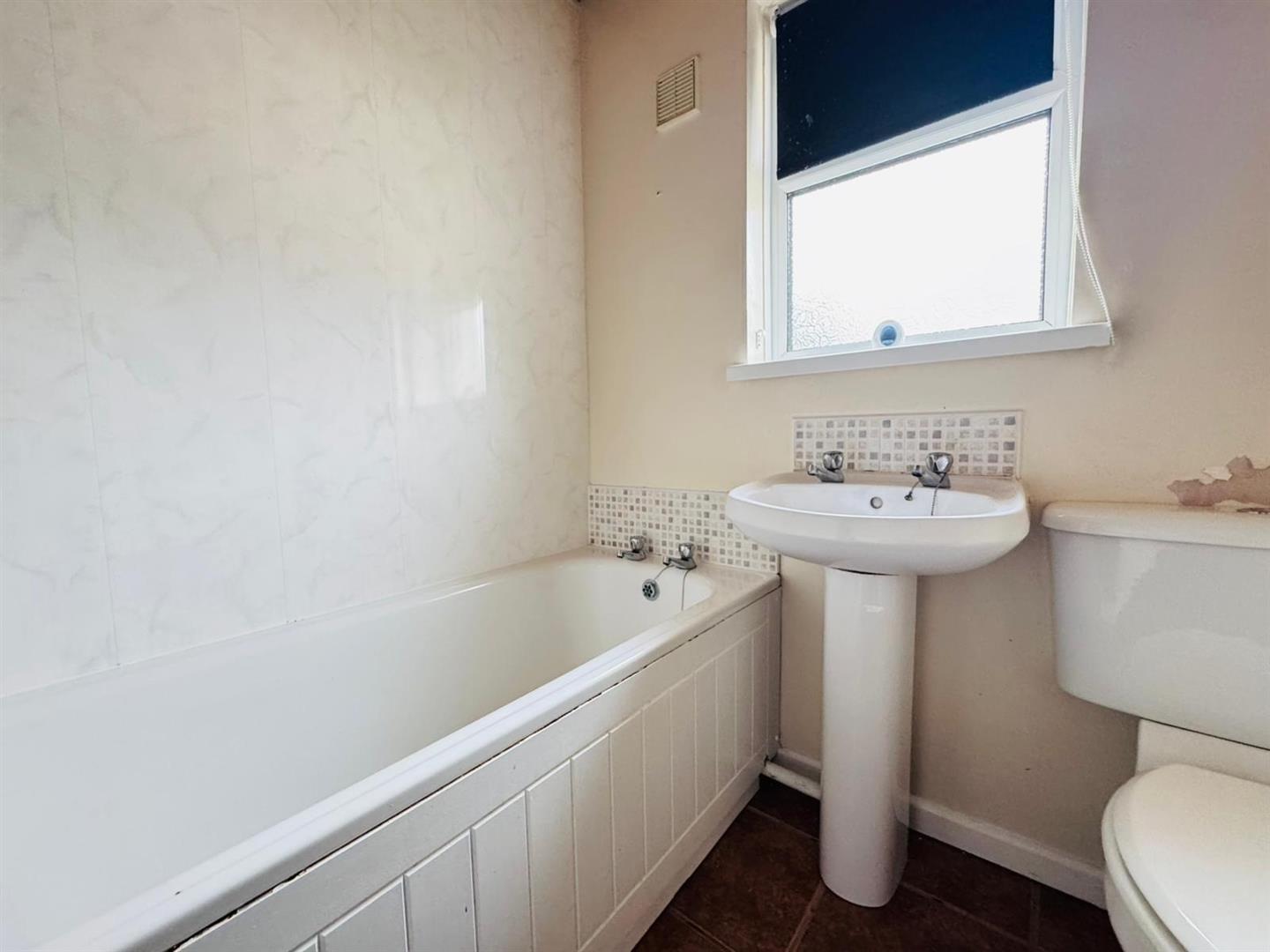 Upstairs there are three bedrooms and a separate bathroom with white suite.