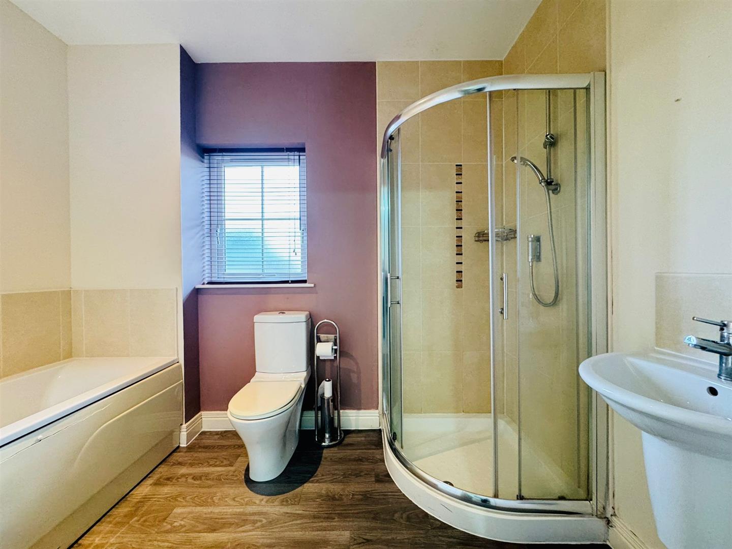 On the first floor there are three bedrooms master ensuite and a separate modern bathroom with white suite and shower cubicle. On the second floor is the master bedroom with modern ensuite.