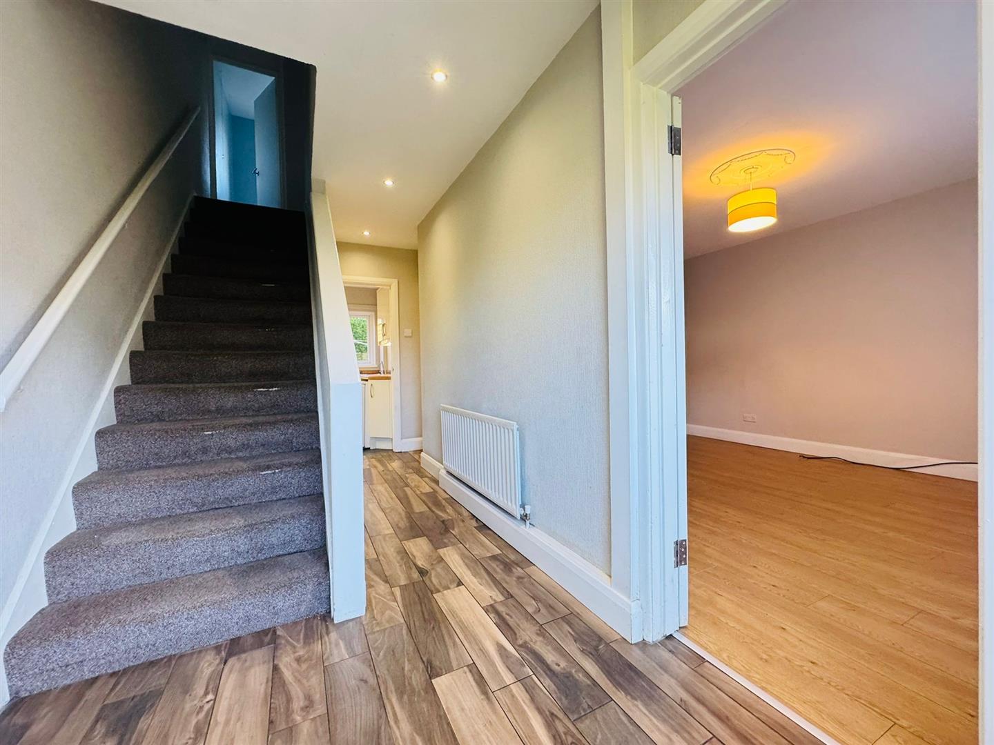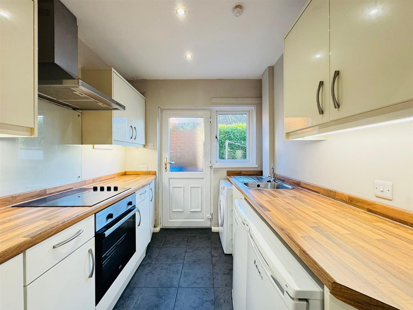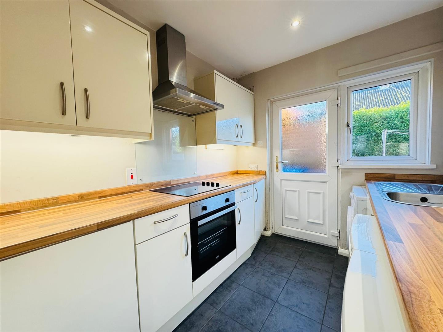 Inside the accommodation comprises; tiled entrance hall, good size lounge with feature wall mounted electric fire, dining room with wood laminate flooring and a modern cream high gloss fitted kitchen with built in oven & hob and access to rear.