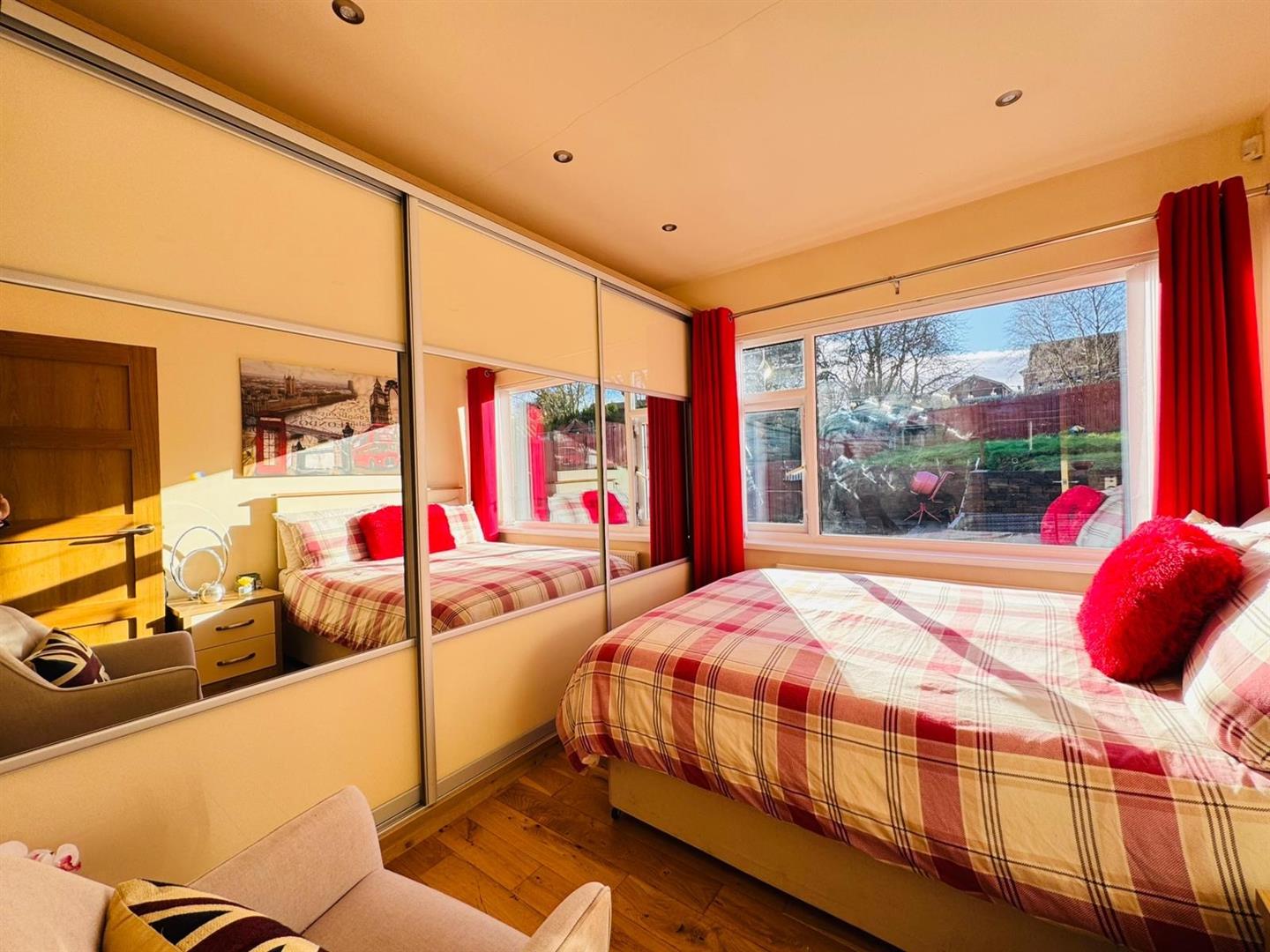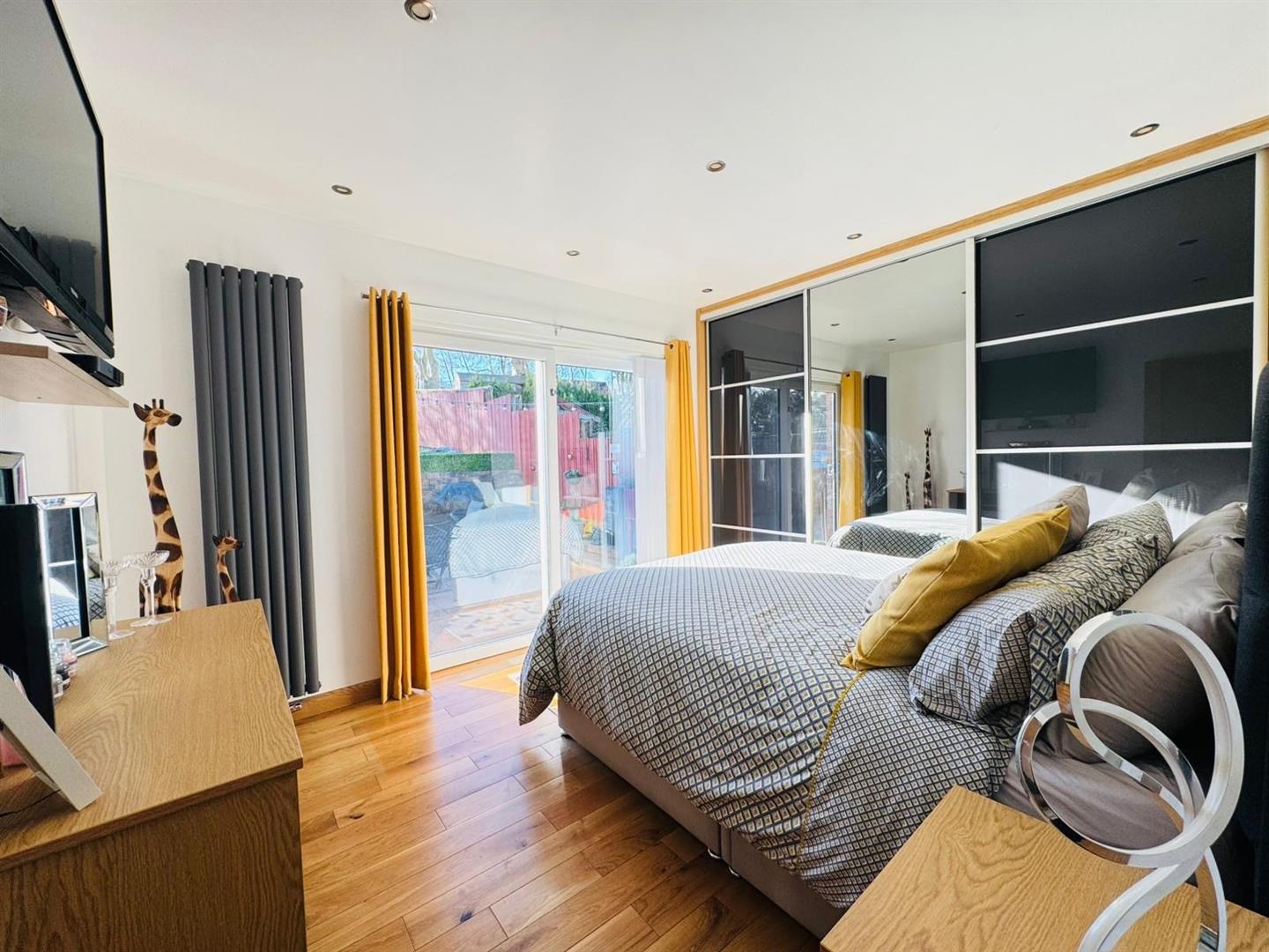 Built in part mirrored sliding robes, solid wood flooring, modern vertical radiator, pvc double glazed sliding patio doors to rear