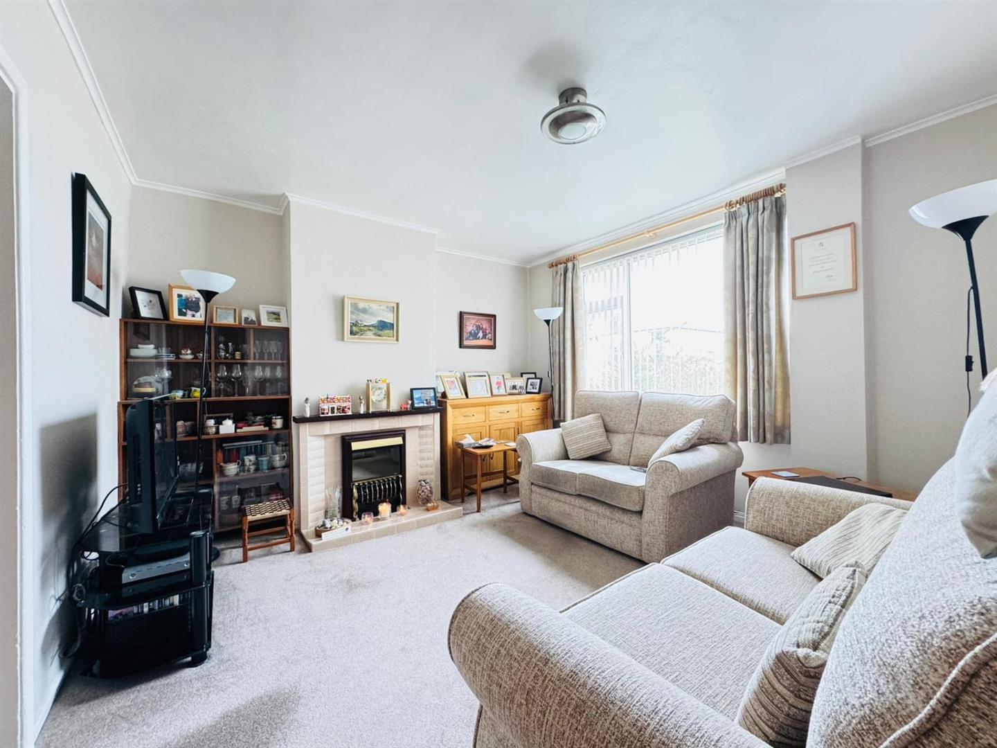 Inside the accommodation comprises: entrance hall, lounge with attractive fireplace and a dining room with archway to fitted kitchen with space for appliances and access to rear
