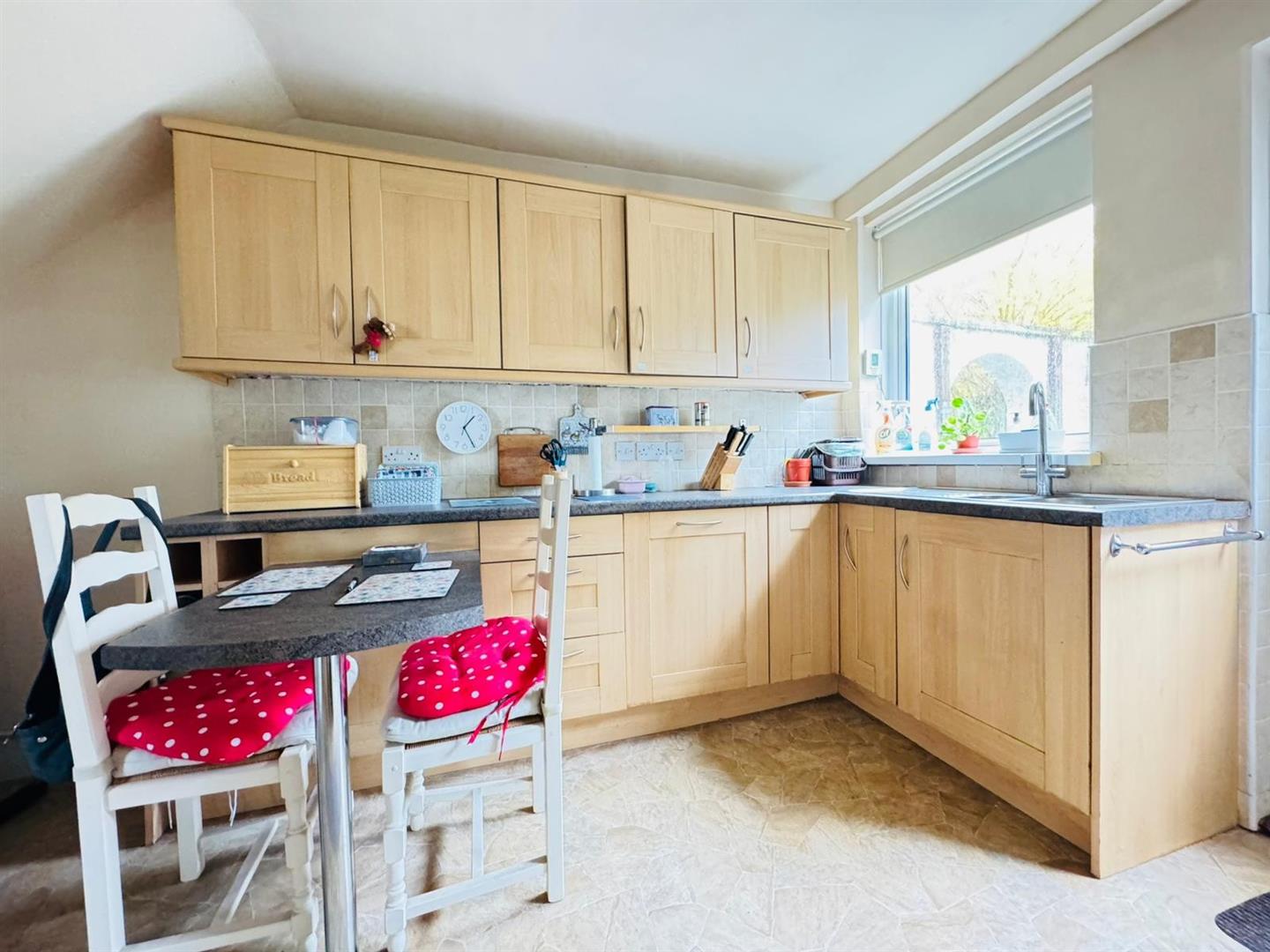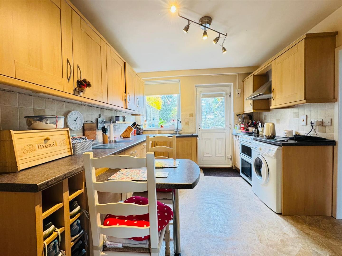 Range of high and low level units, formica worktop, basin 1/2 stainless steel sink unit, cooker space, fridge/ freezer space, plumbed for washing machine, partly tiled walls, radiator, pvc double glazed back door