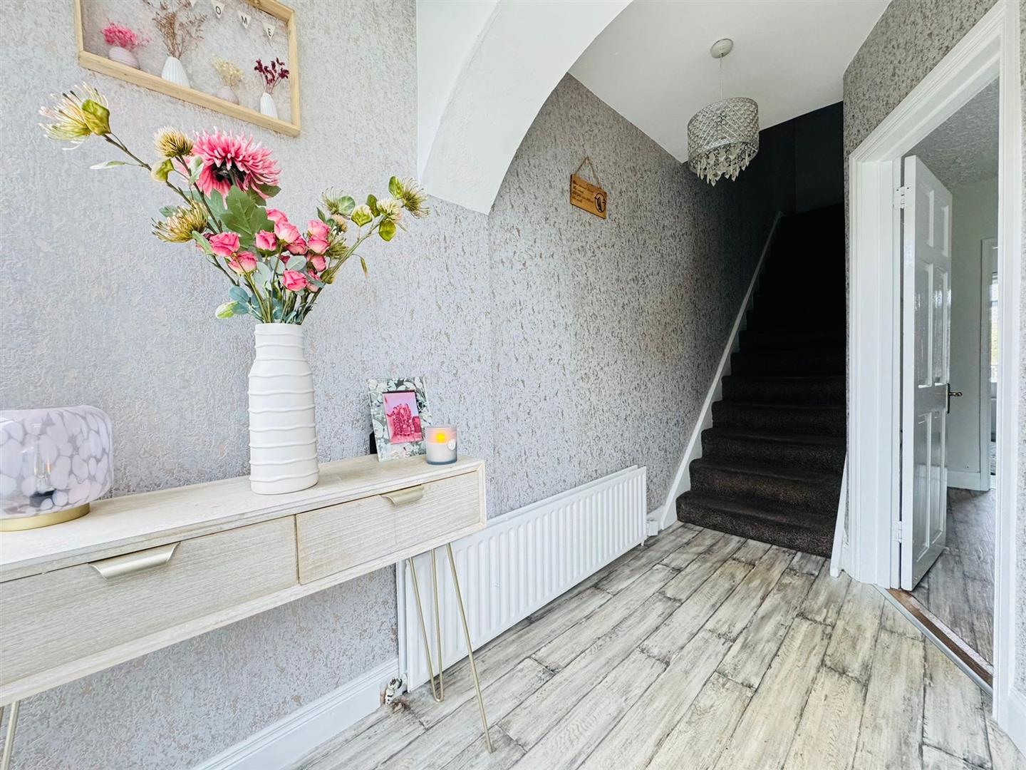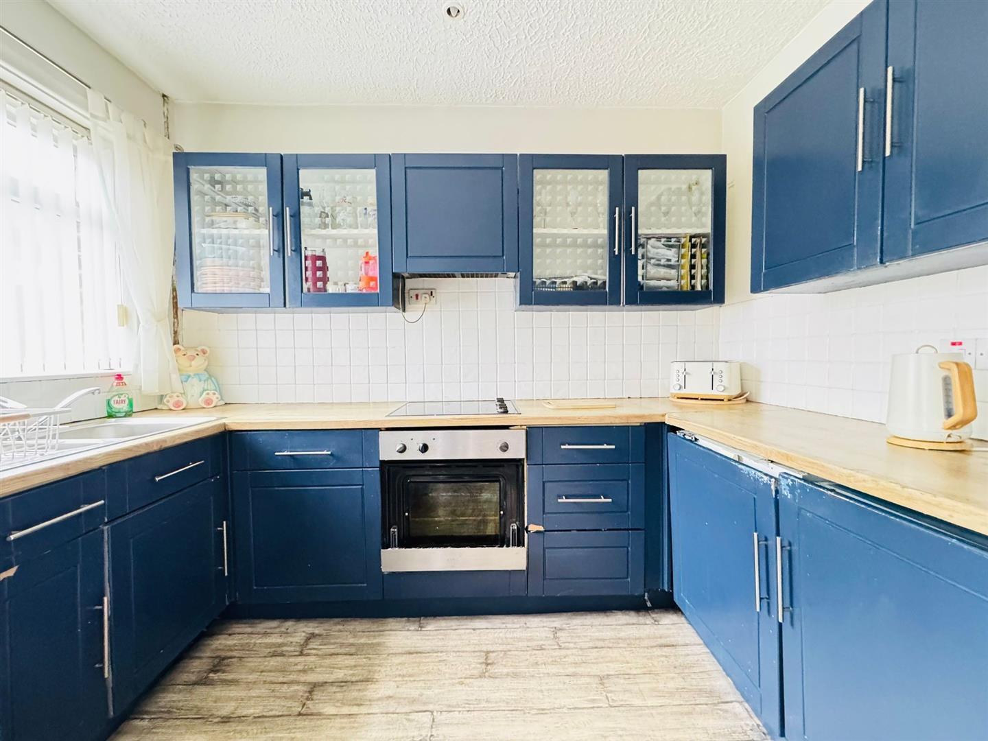 Inside the accommodation comprises; entrance hall, lounge, dining room with access to rear and archway to a fitted kitchen with built in oven & hob and space for appliances.