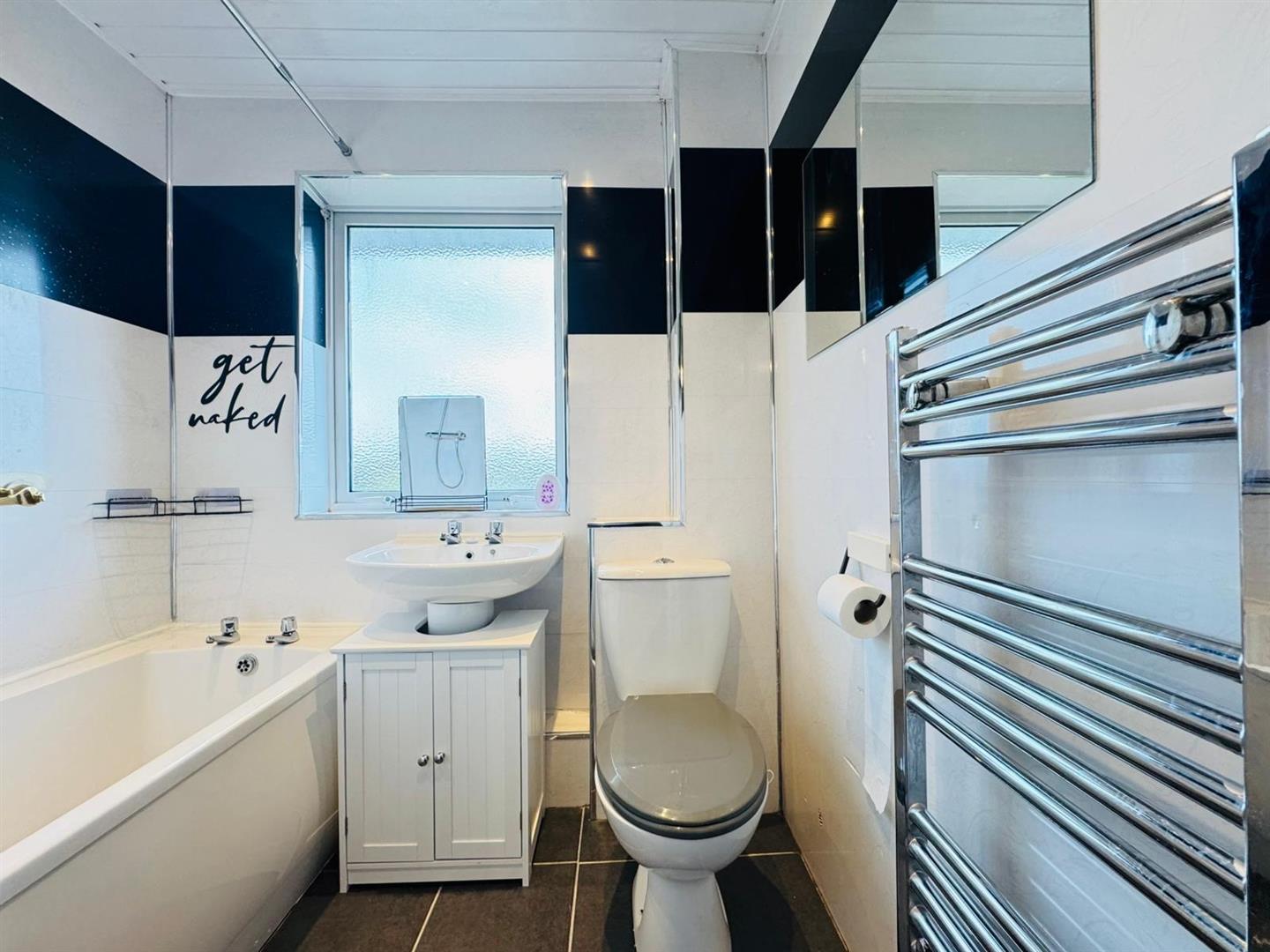 Upstairs there are three bedrooms and a separate bathroom with white suite.