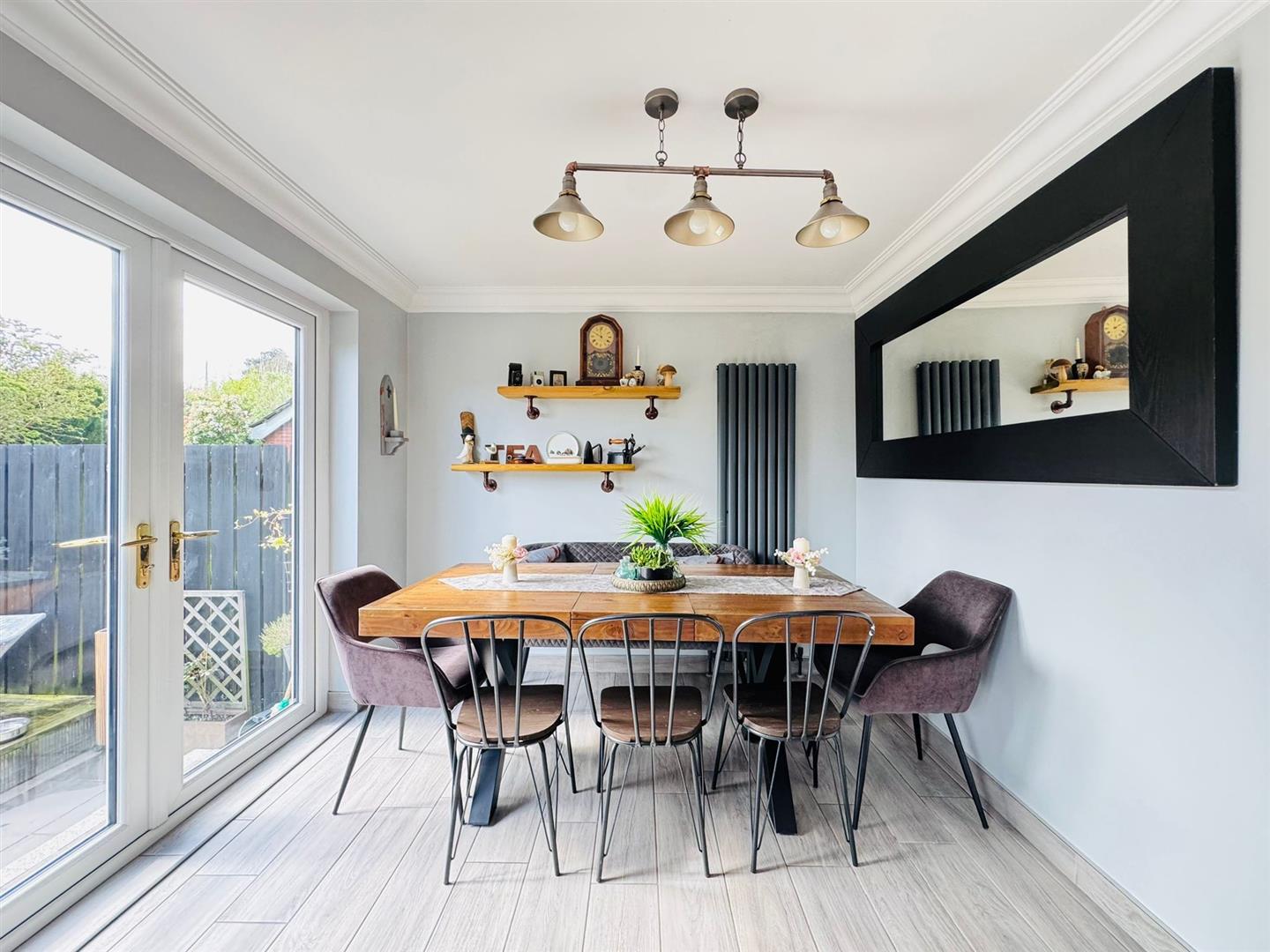 Double glazed front door, tiled floor, modern vertical radiator