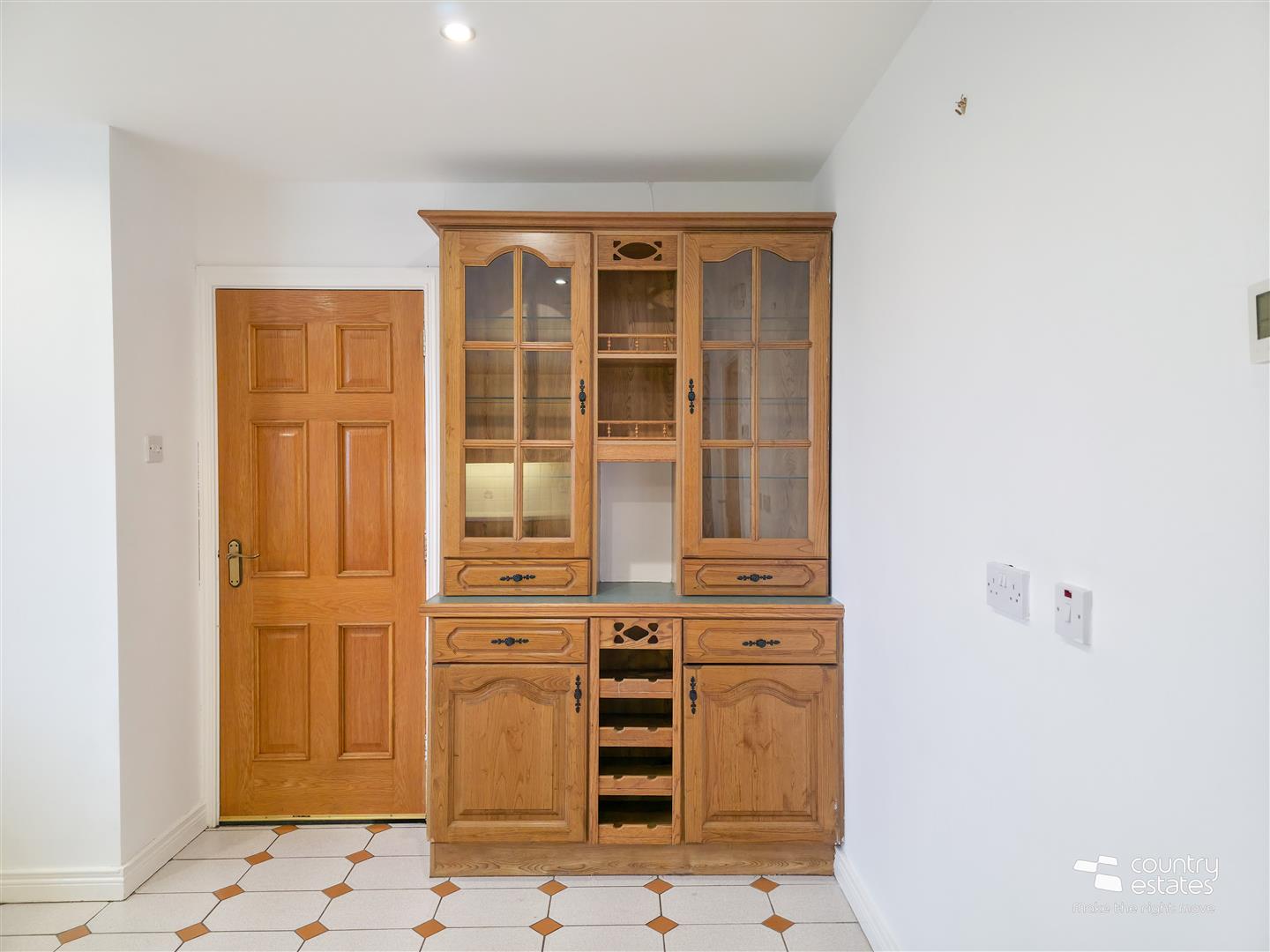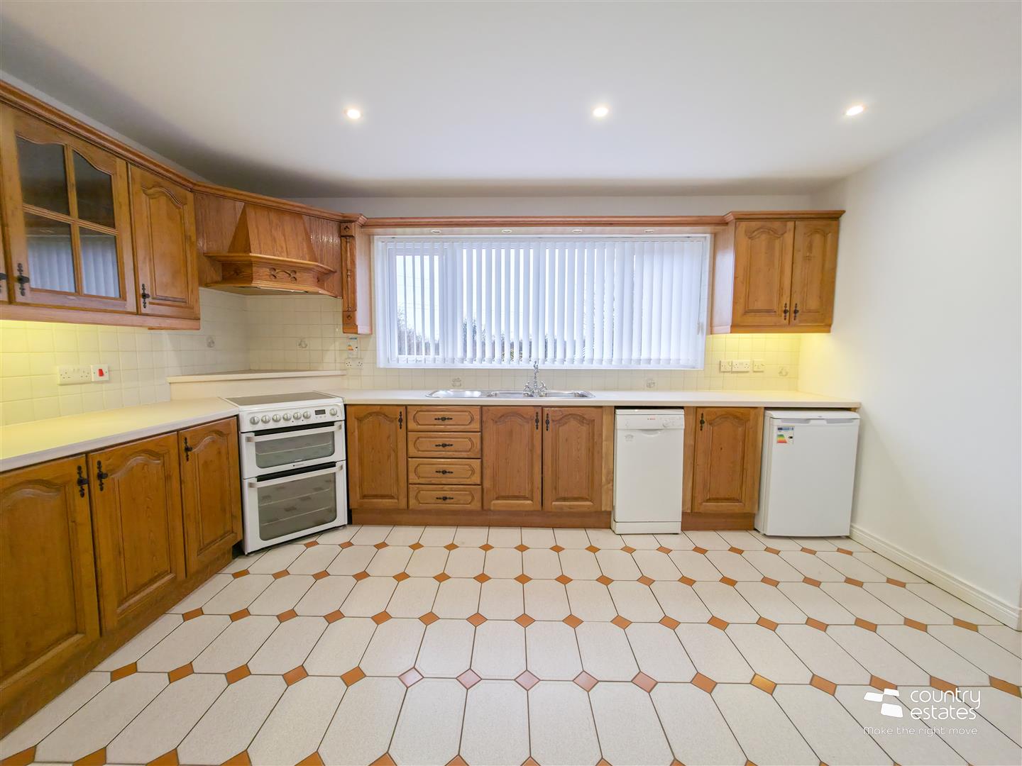 Equipped with a comprehensive range of high and low level shaker style fitted units and contrasting work surfaces. Double bowl single drainer stainless steel sink unit with traditional mixer tap. Space for free standing oven with over head extractor fan housed in matching canopy. Plumbed for dish washer. Space for free standing under counter fridge. Pull out larder cupboard. Twin glass display cabinets. Recessed downlighting. Tiled floor. Part tiled walls. Ample space for casual dining.