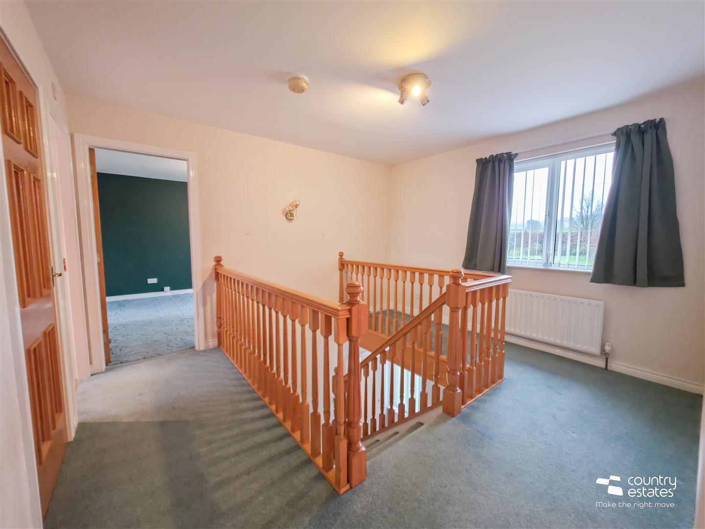 U-shaped Gallery style landing. Shelved hotpress/storage cupboard with Megaflo pressurised cylinder.