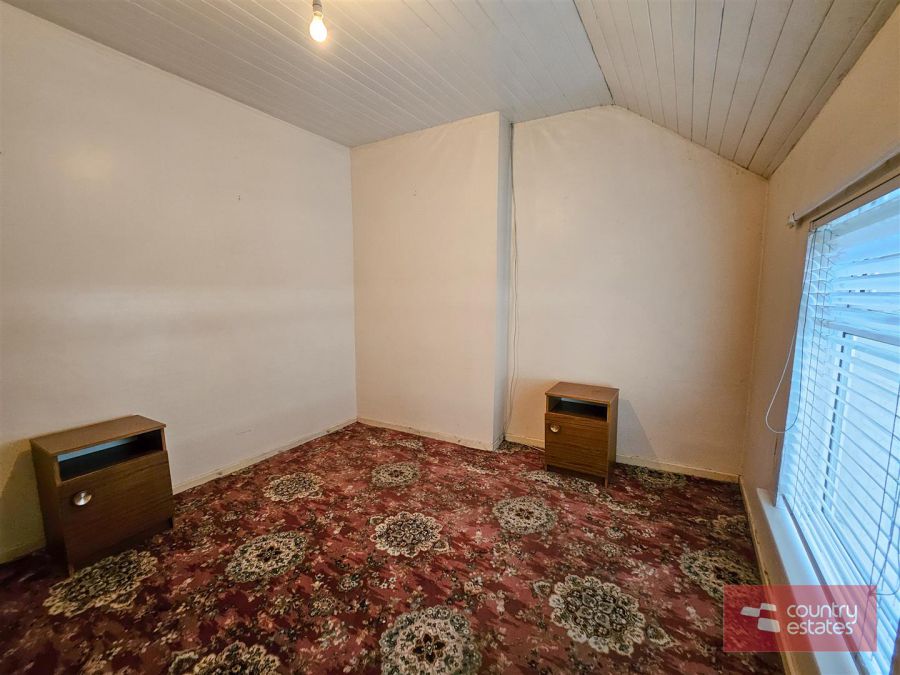 At widest point. Built in twin mirrored slide robes. Wood panelled ceiling.