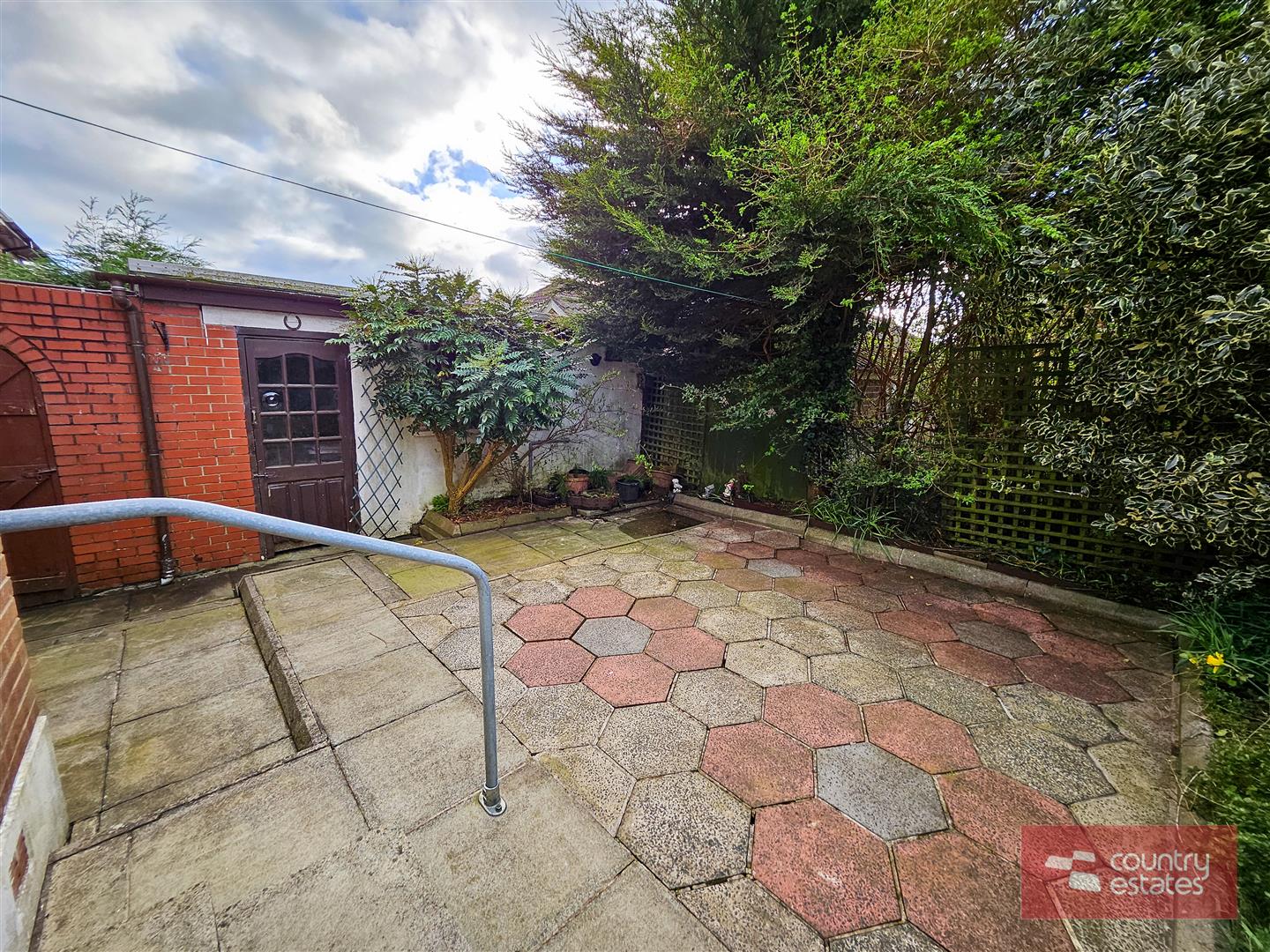Private enclosed hard landscape garden to rear. Screened by perimeter fence and a variety of mature trees.