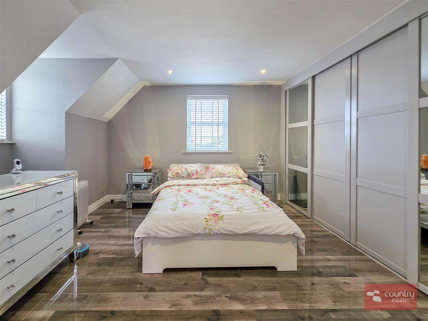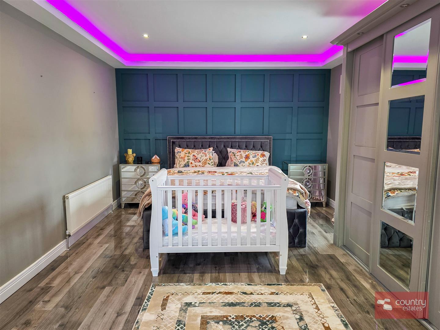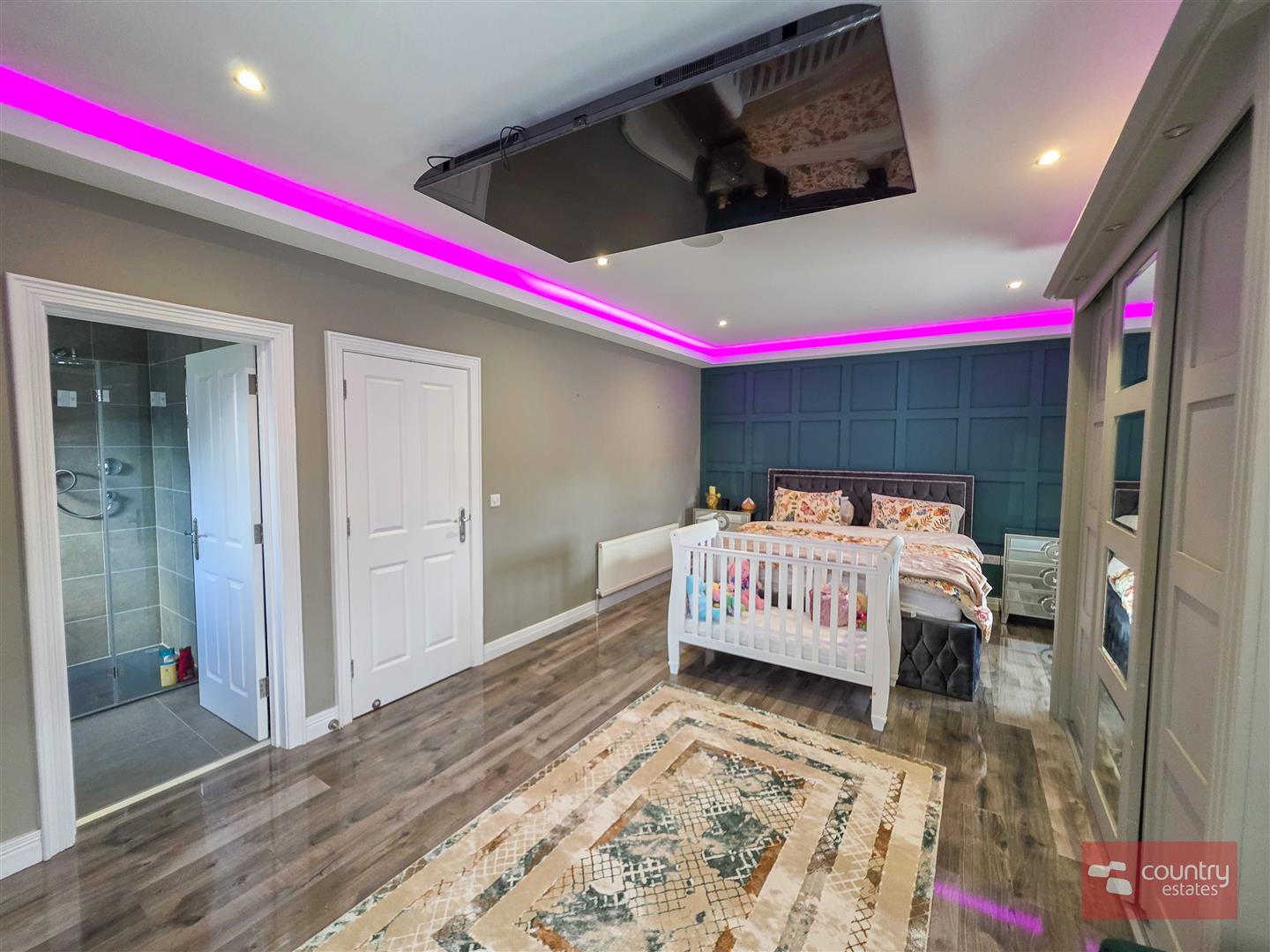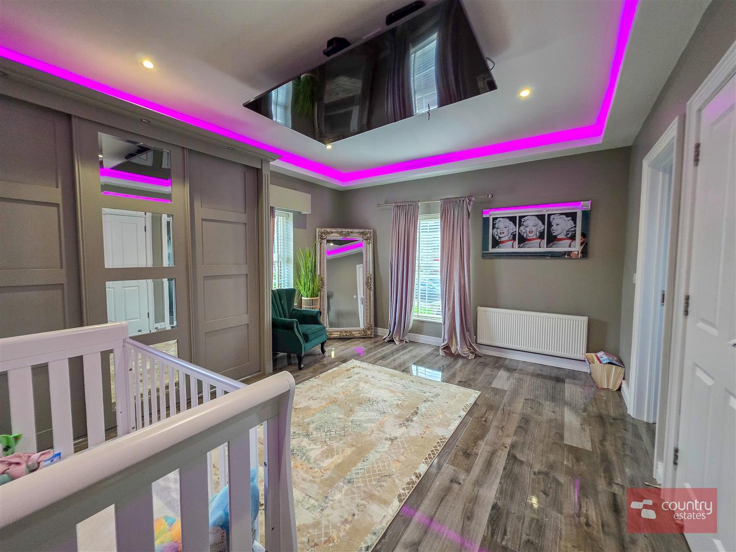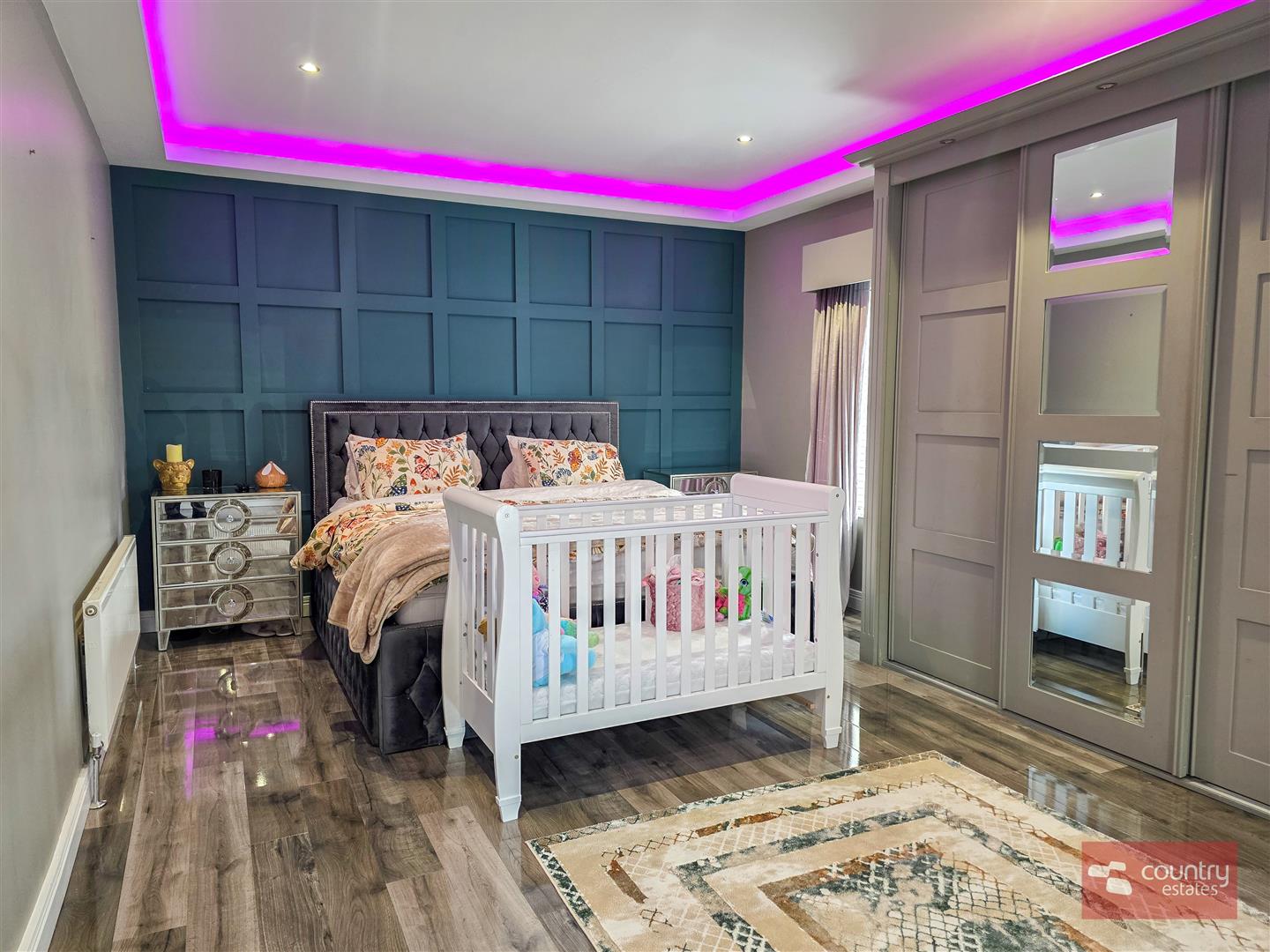 Feature coffer style ceilings with RGB LED lighting. Built in ceiling fitted bluetooth speaker system. Quality high gloss laminate flooring. Built in three-bay wardrobes. Dual aspect windows. Quartz window sills.