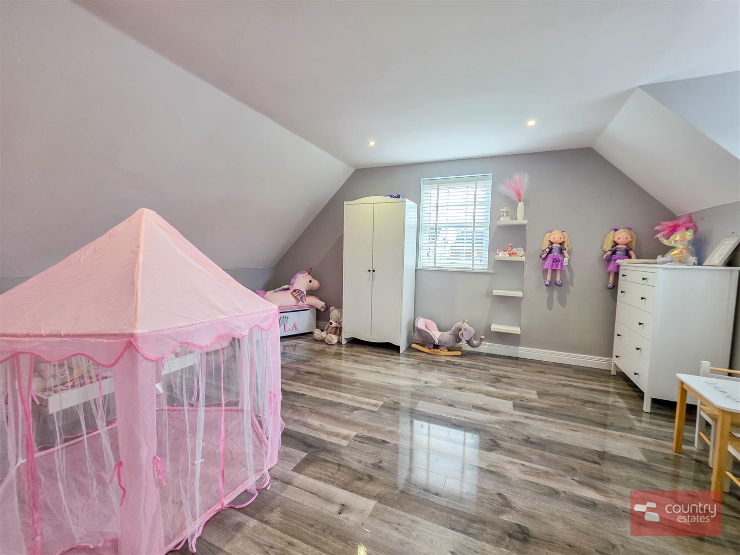 The first floor offers two double bedrooms, including a master with en suite, and a deluxe family bathroom. Two additional double bedrooms and a second cloakroom are found on the top floor.