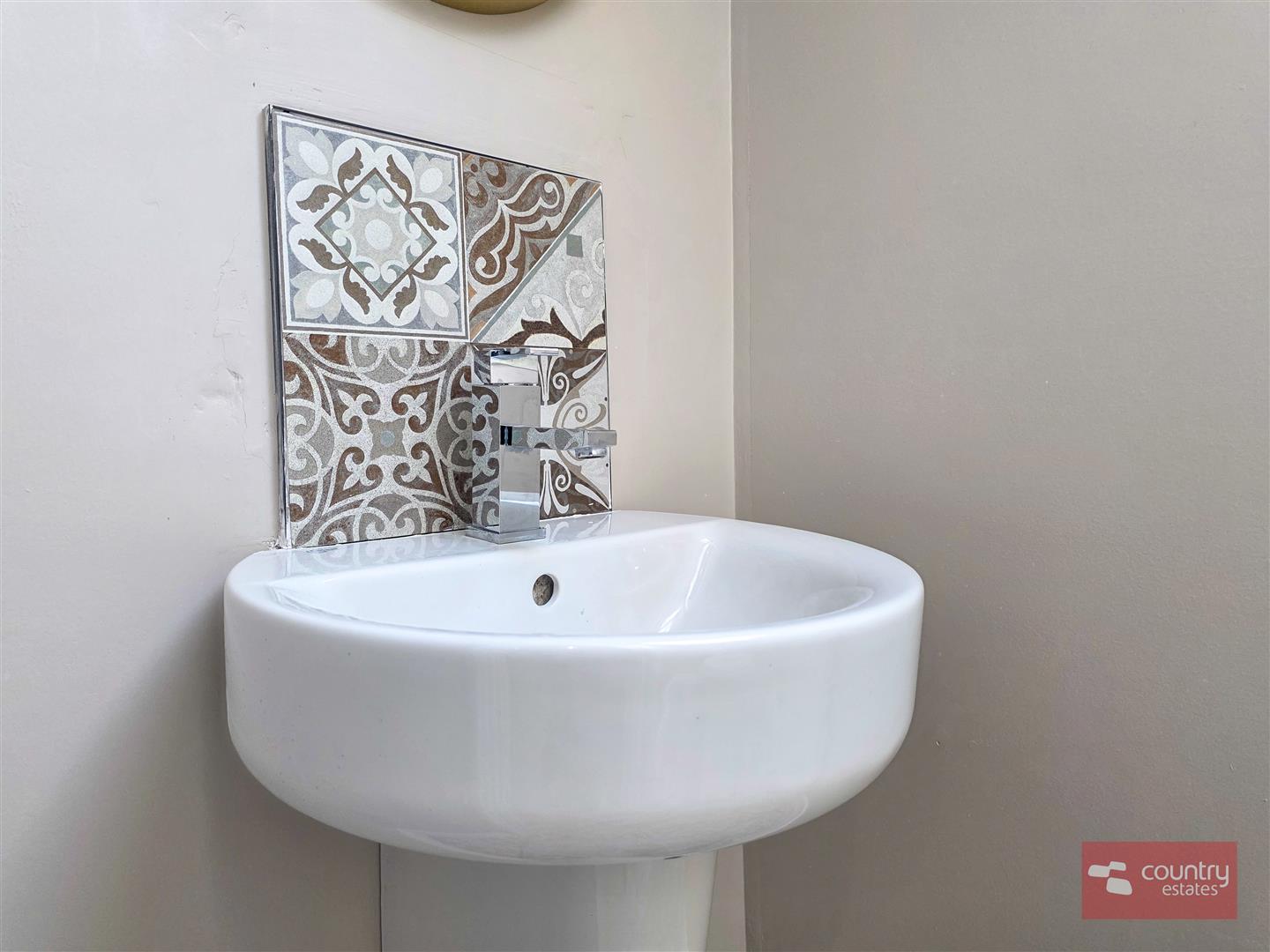 Set over three floors, the home features a welcoming entrance hall, furnished cloakroom, bright bay-fronted lounge, and an open-plan kitchen/dining area with luxury quartz worktops and integrated Neff appliances. A separate utility room adds further practicality.