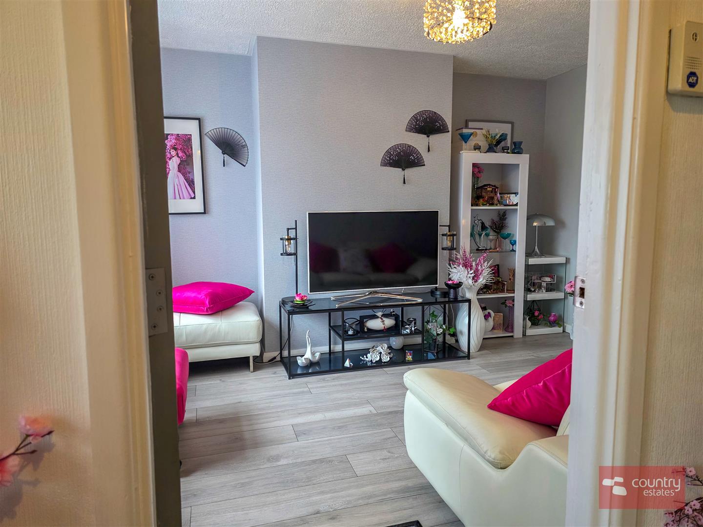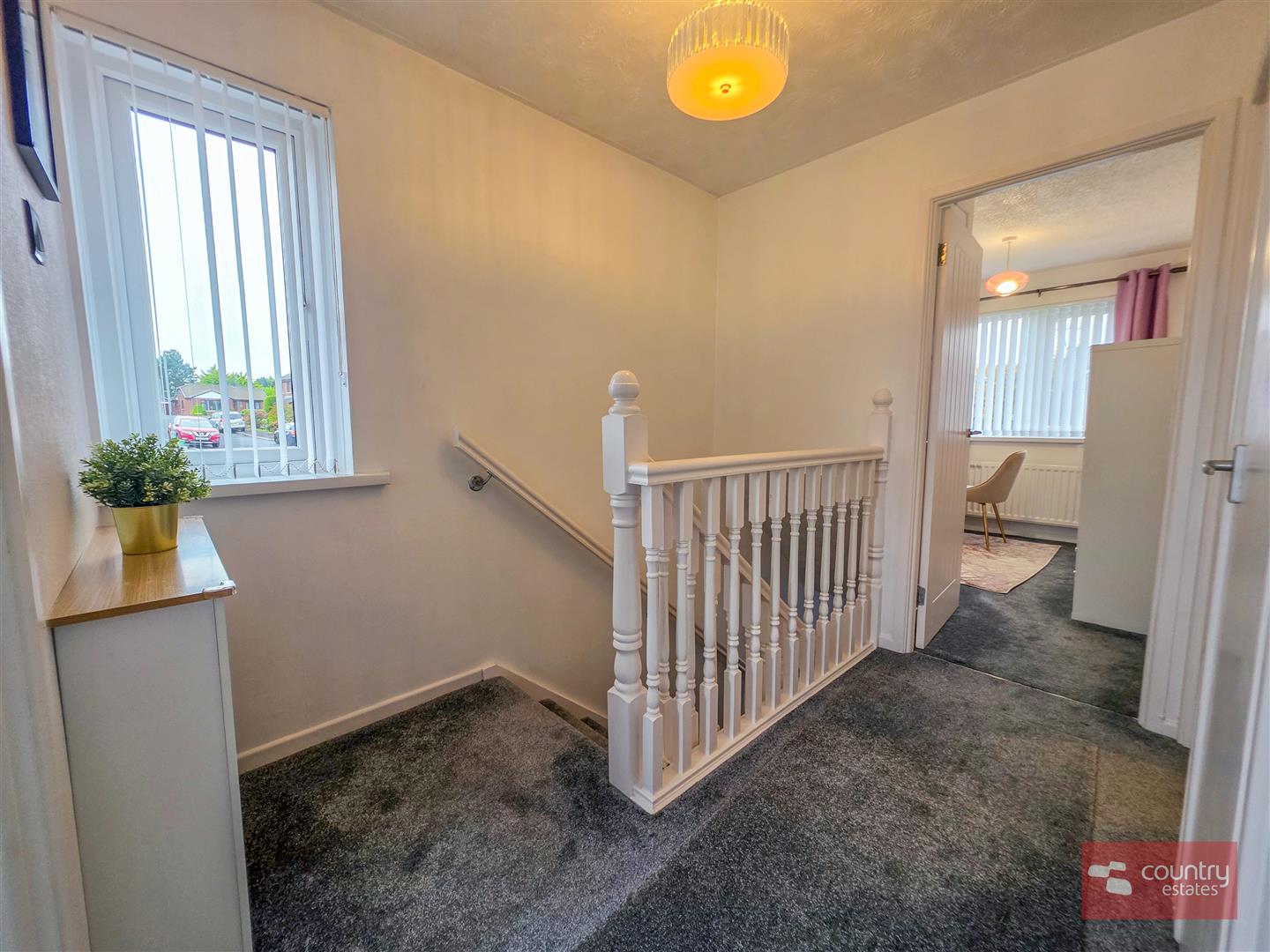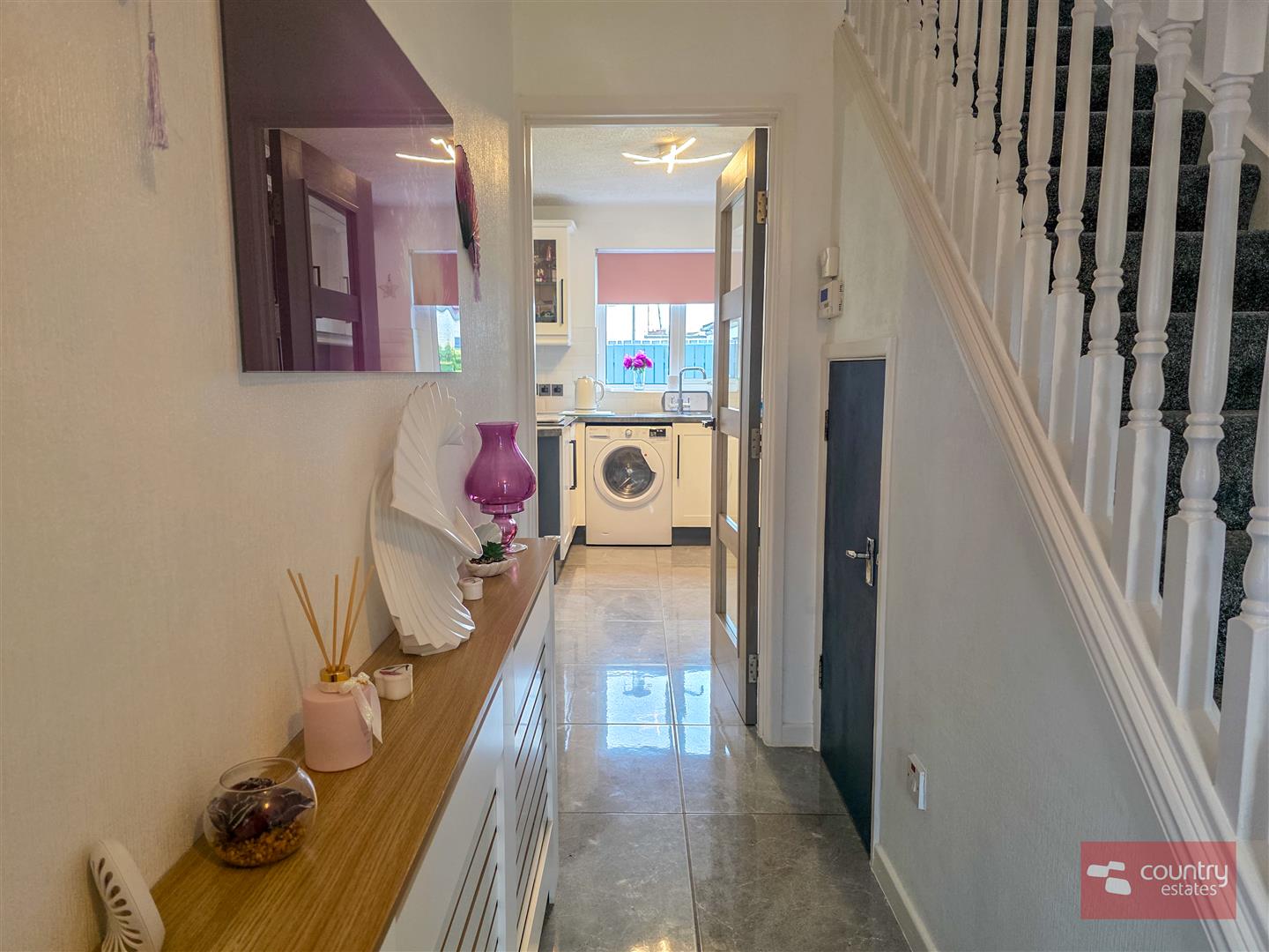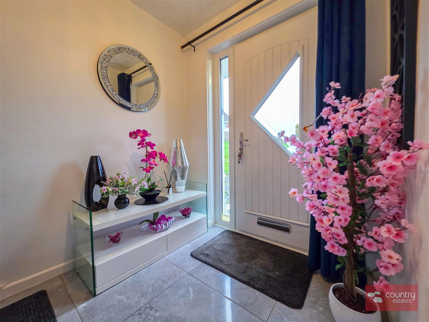 Composite front door with matching side screen into spacious well presented entrance hall with tiled flooring. Under stairs storage cupboard.