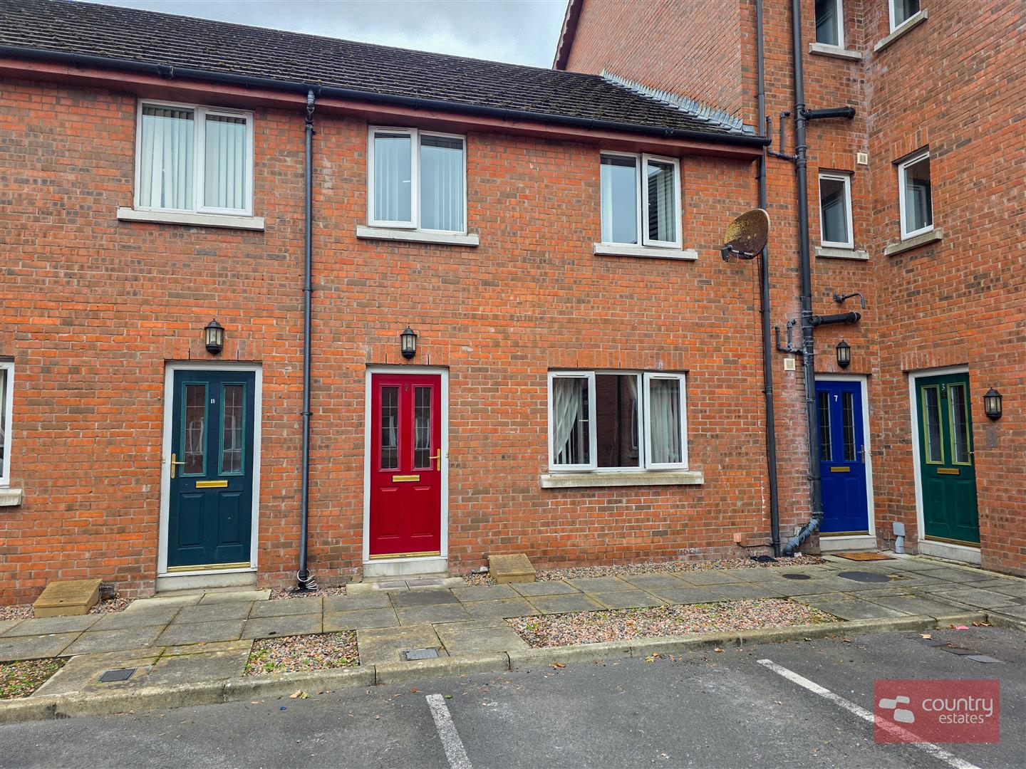 Residents and guest parking to front. Private driveway to rear finished in pink stones.