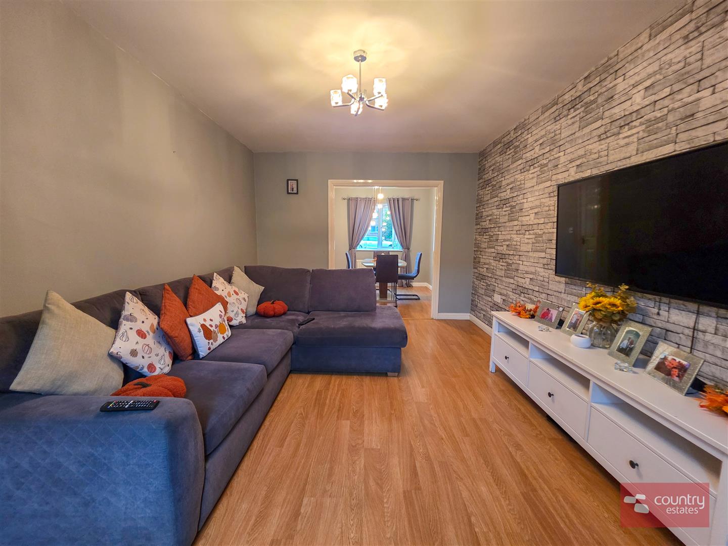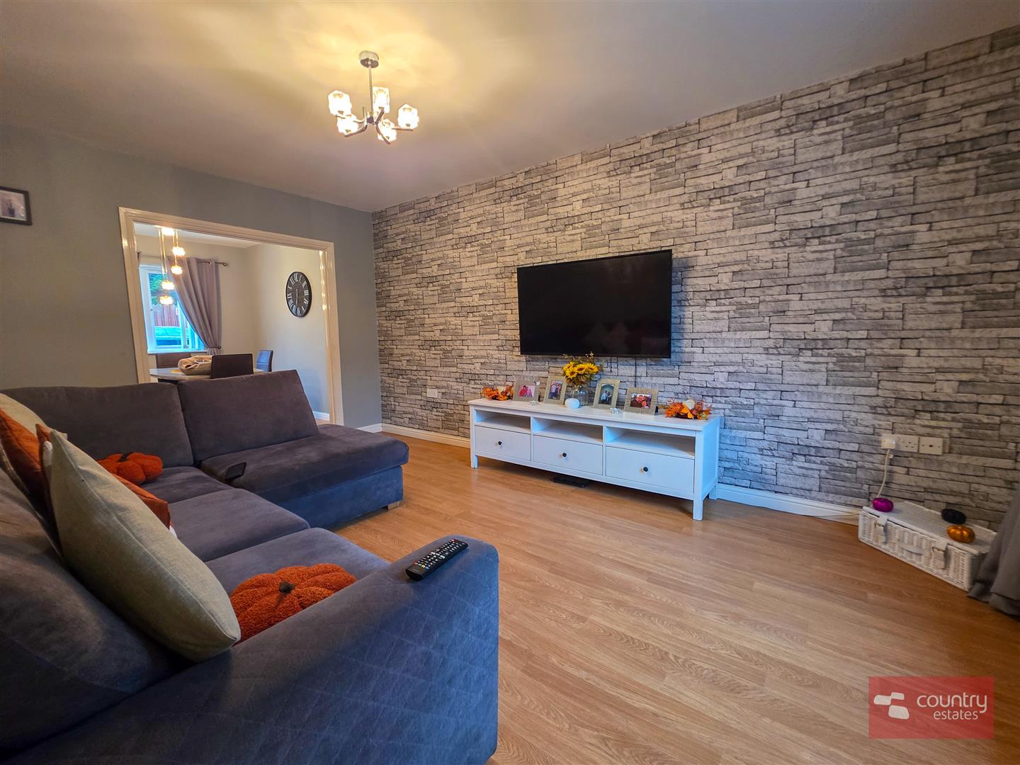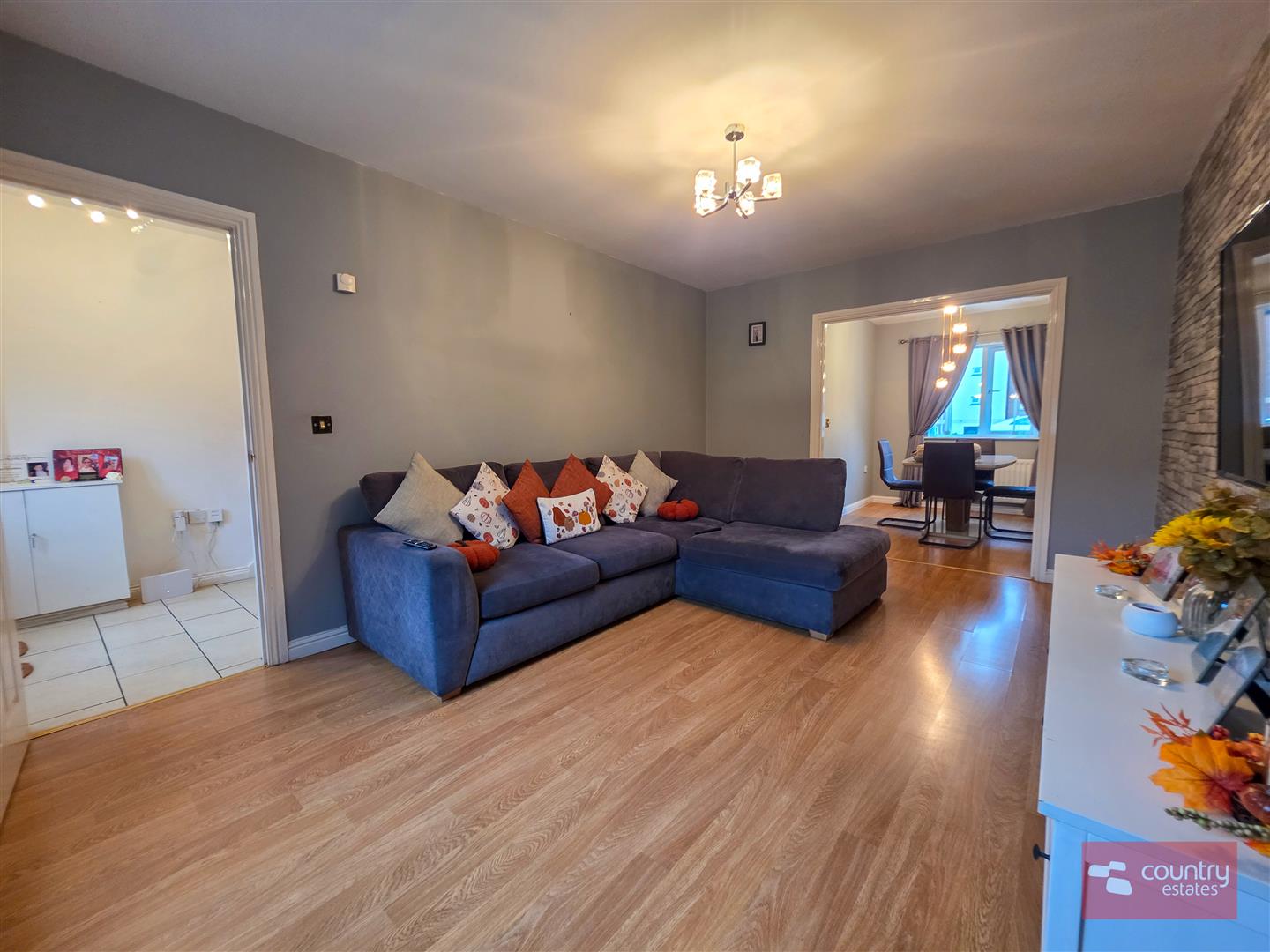 Quality laminate flooring. Open plan into: