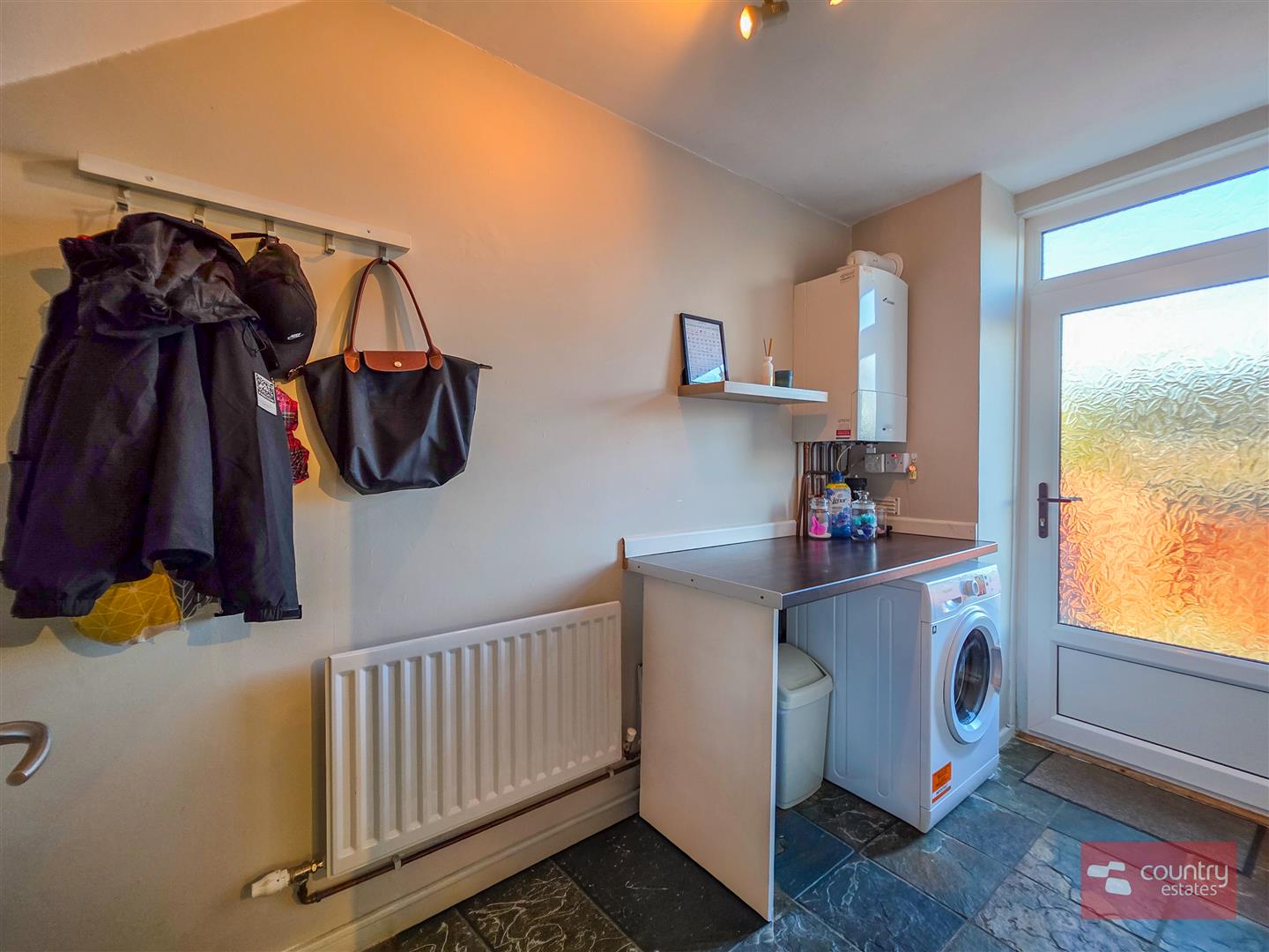 Plumbed for washing machine. Storage space. Tiled floor. PVC double glazed door to rear garden.