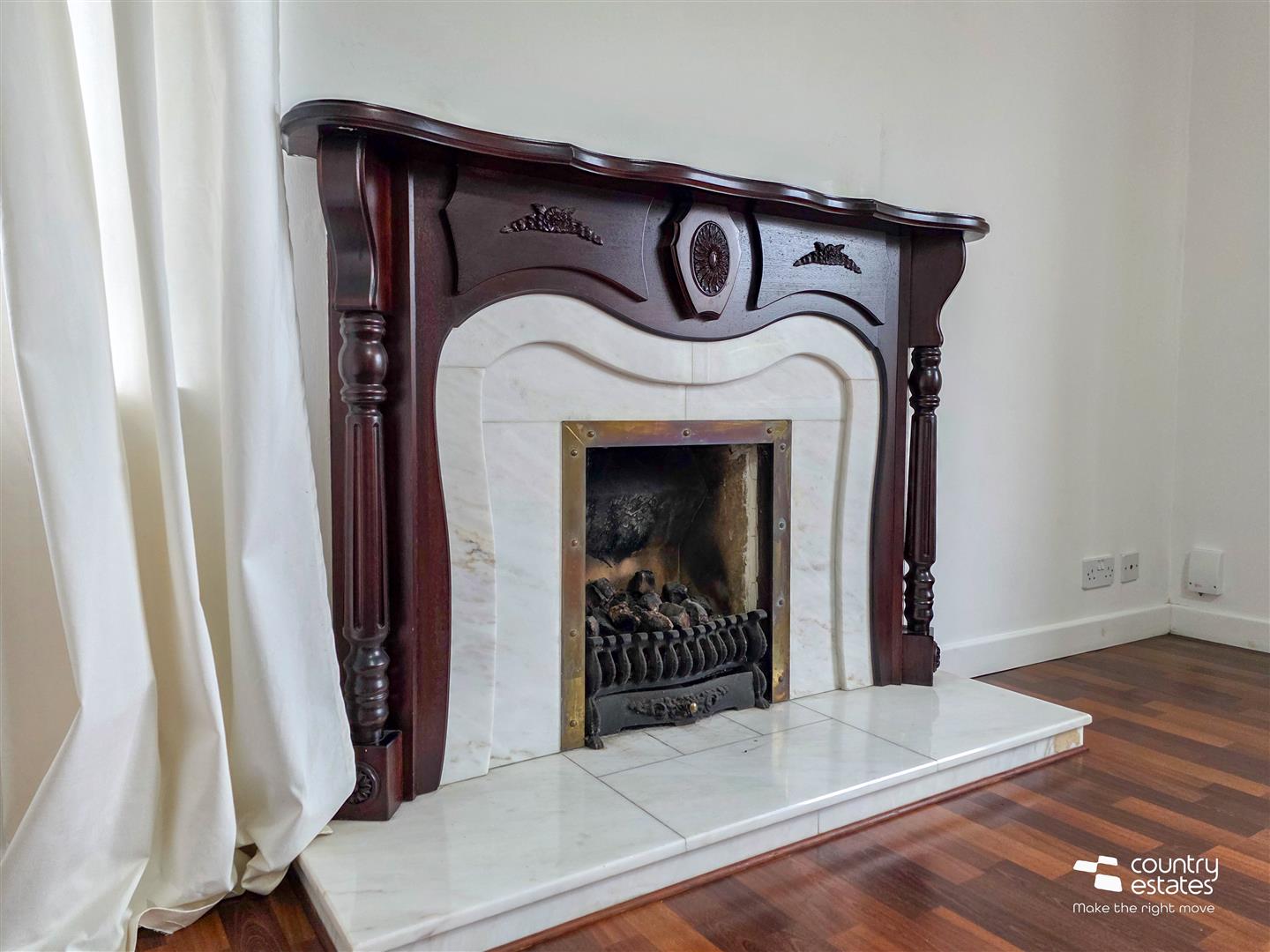 Attractive feature fireplace. Quality laminate flooring. Dual window aspect.