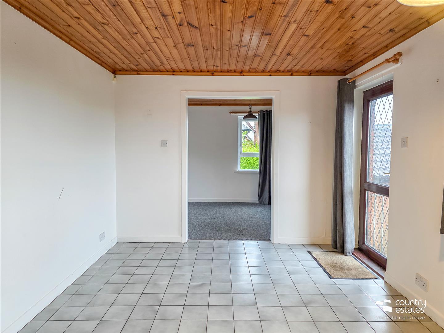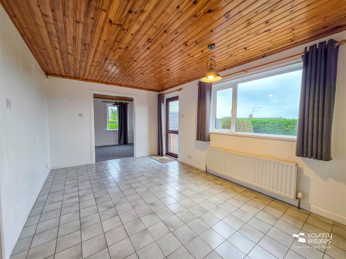 Dual window aspect. Pine panelled ceiling. PVC double glazed door to rear garden. Tiled floor. Open into: