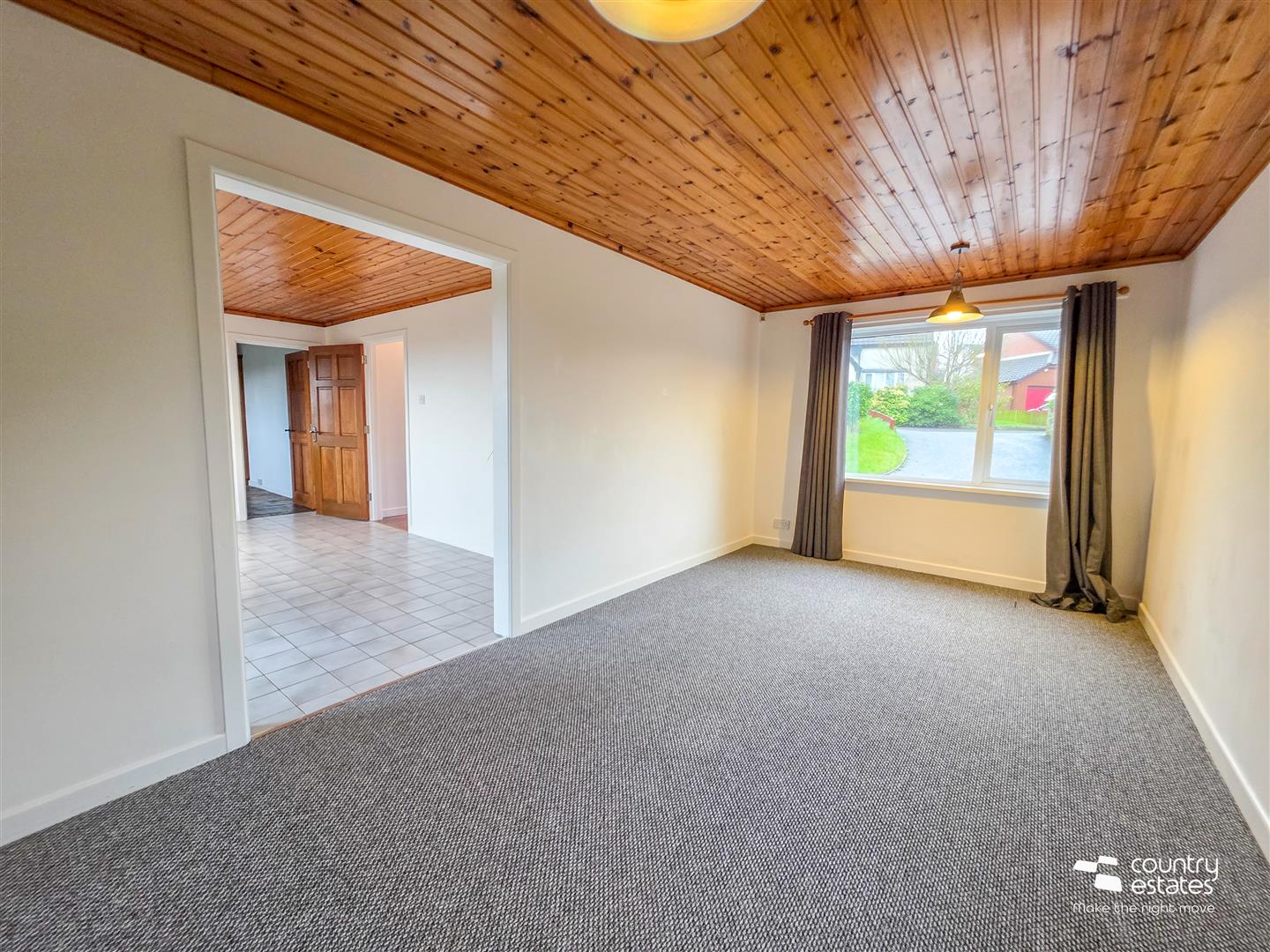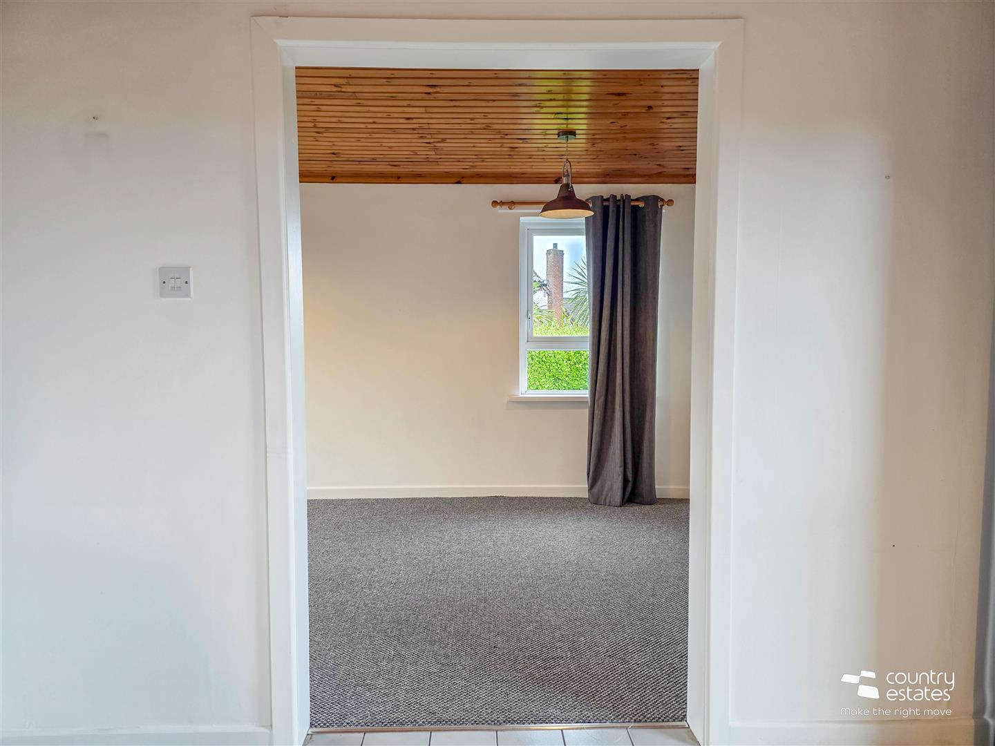 Pine panelled ceiling. Dual window aspect.