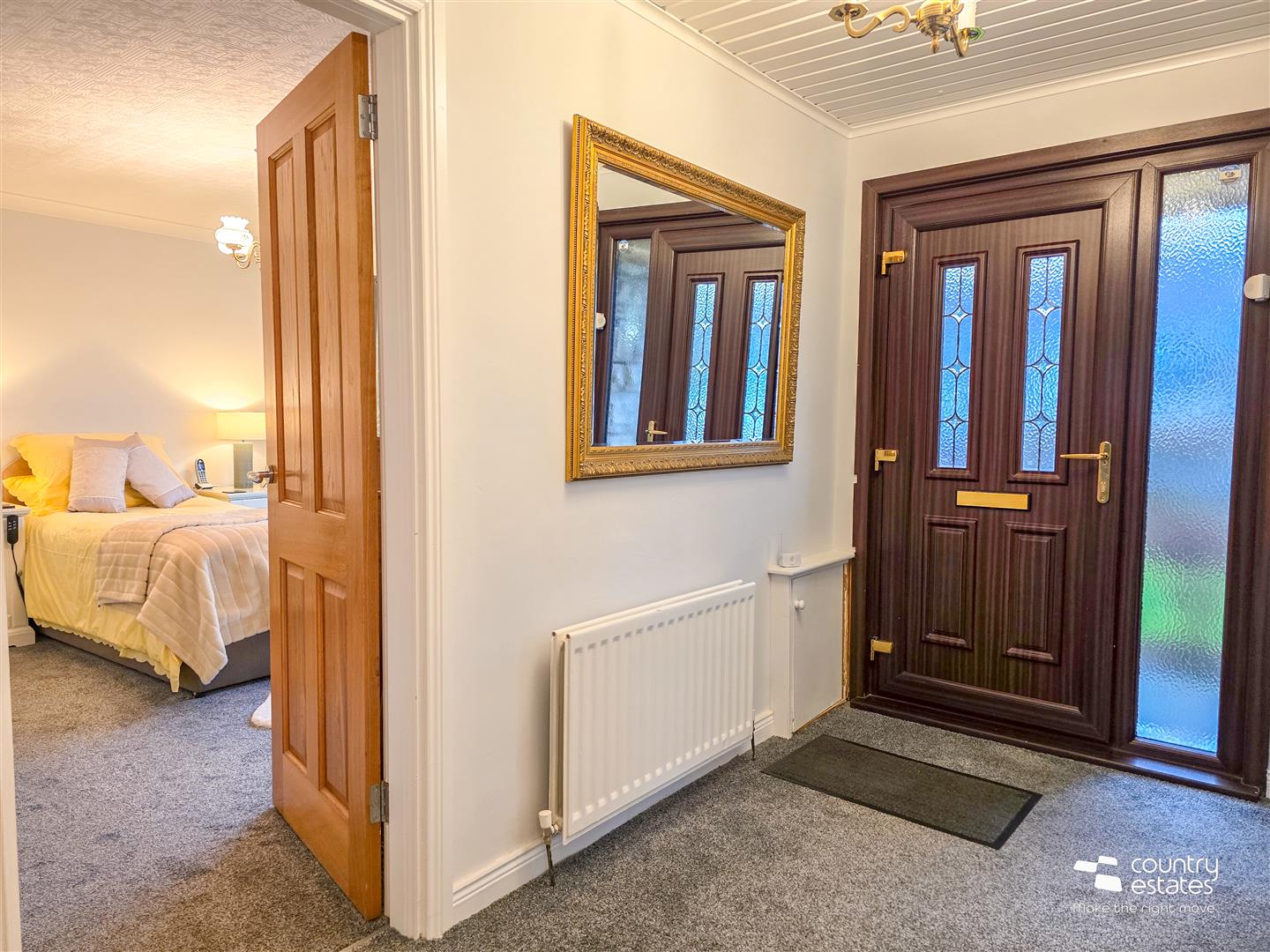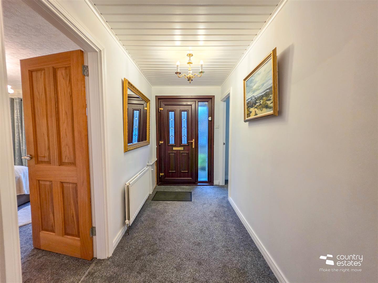 PVC double glazed front door with matching side screen into spacious well presented entrance hall. Under stairs storage cupboard.