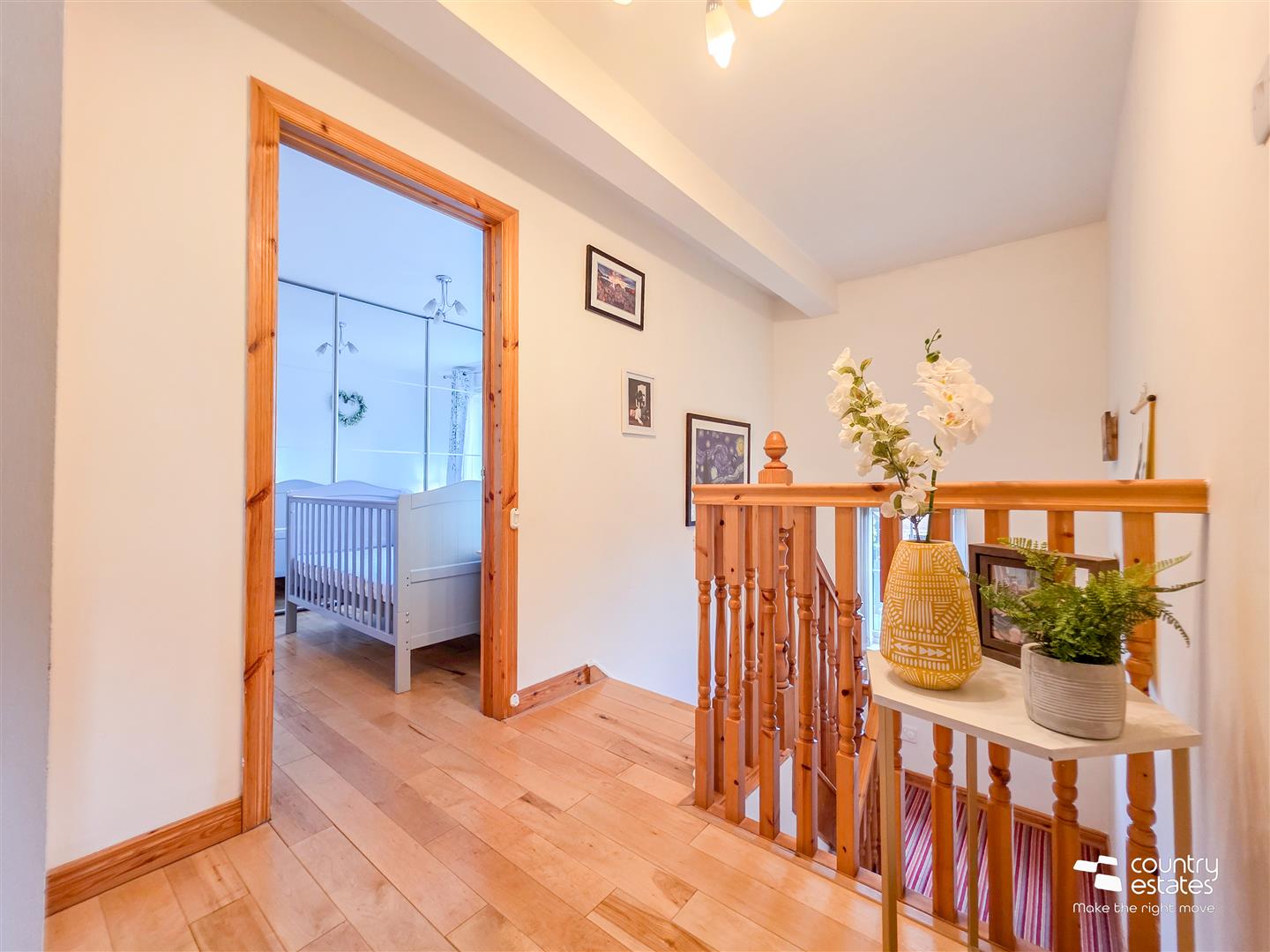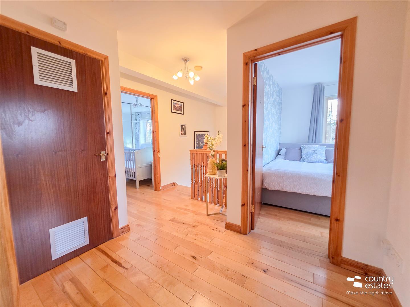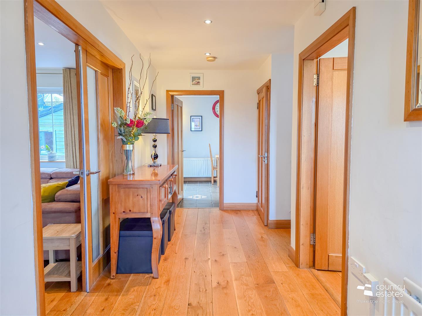 Hard wood flooring. Under-stairs storage cupboard. Recessed downlighting.