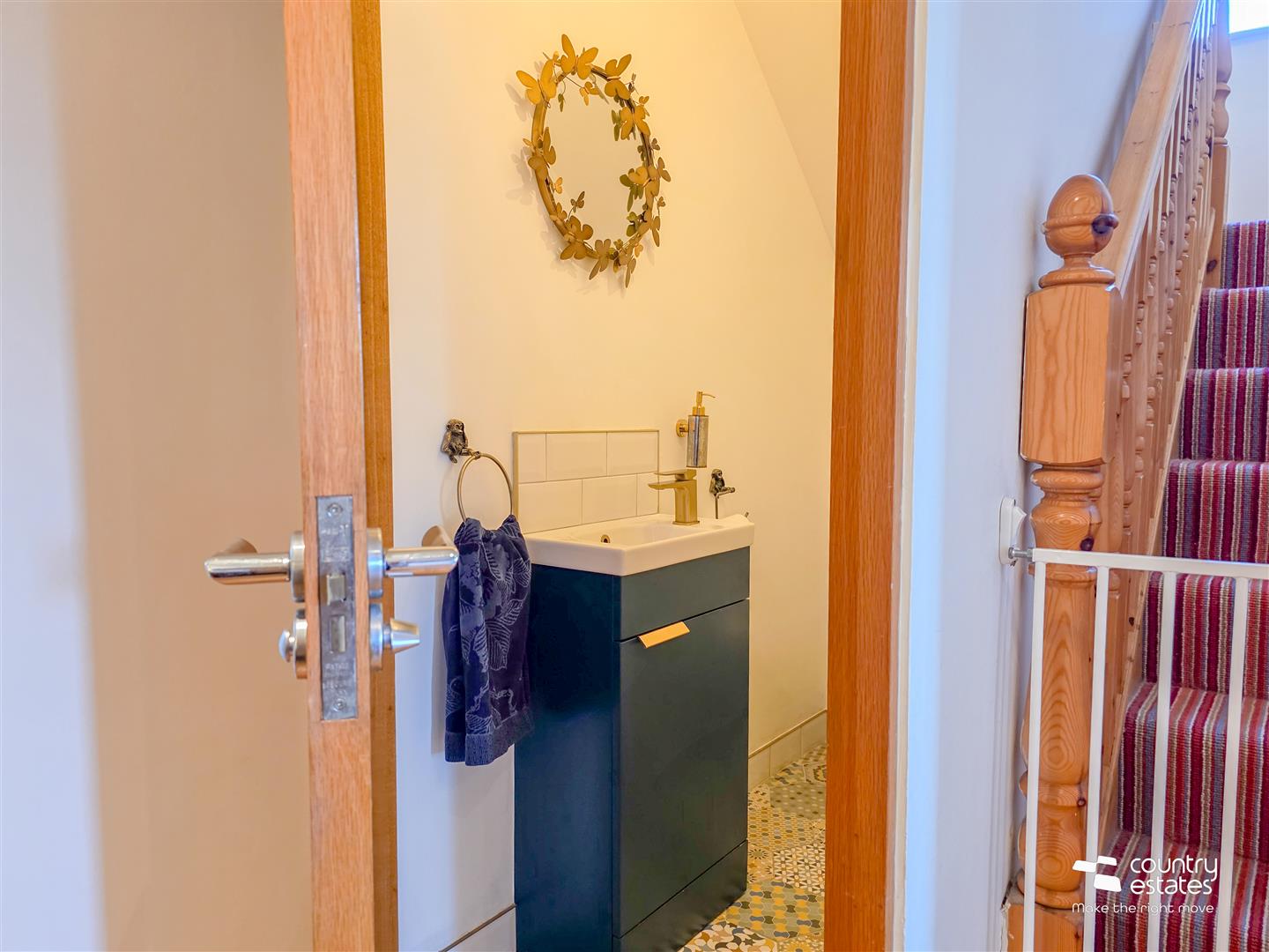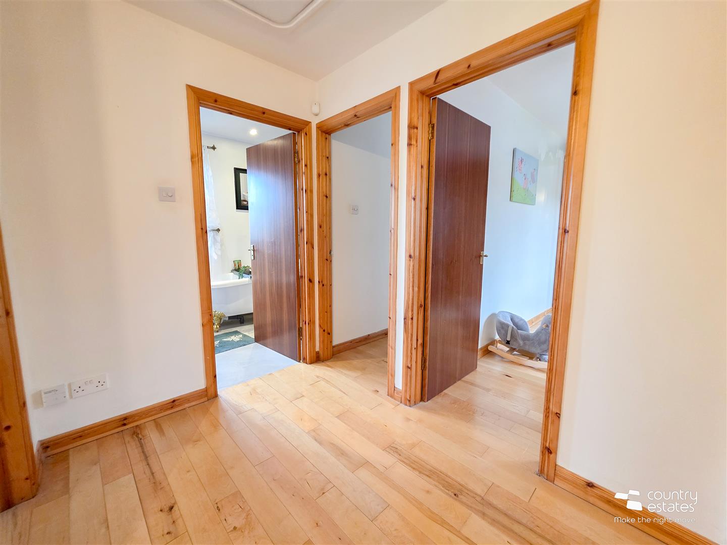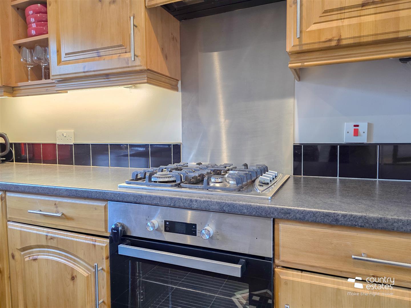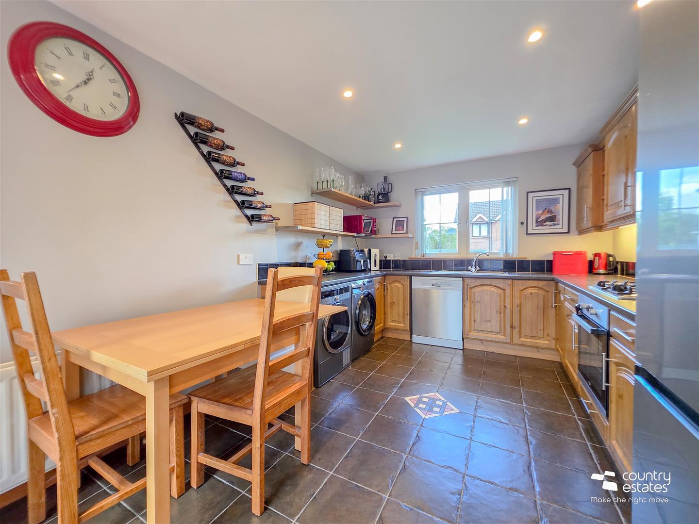 Hard wood flooring. Under-stairs storage cupboard. Recessed downlighting.