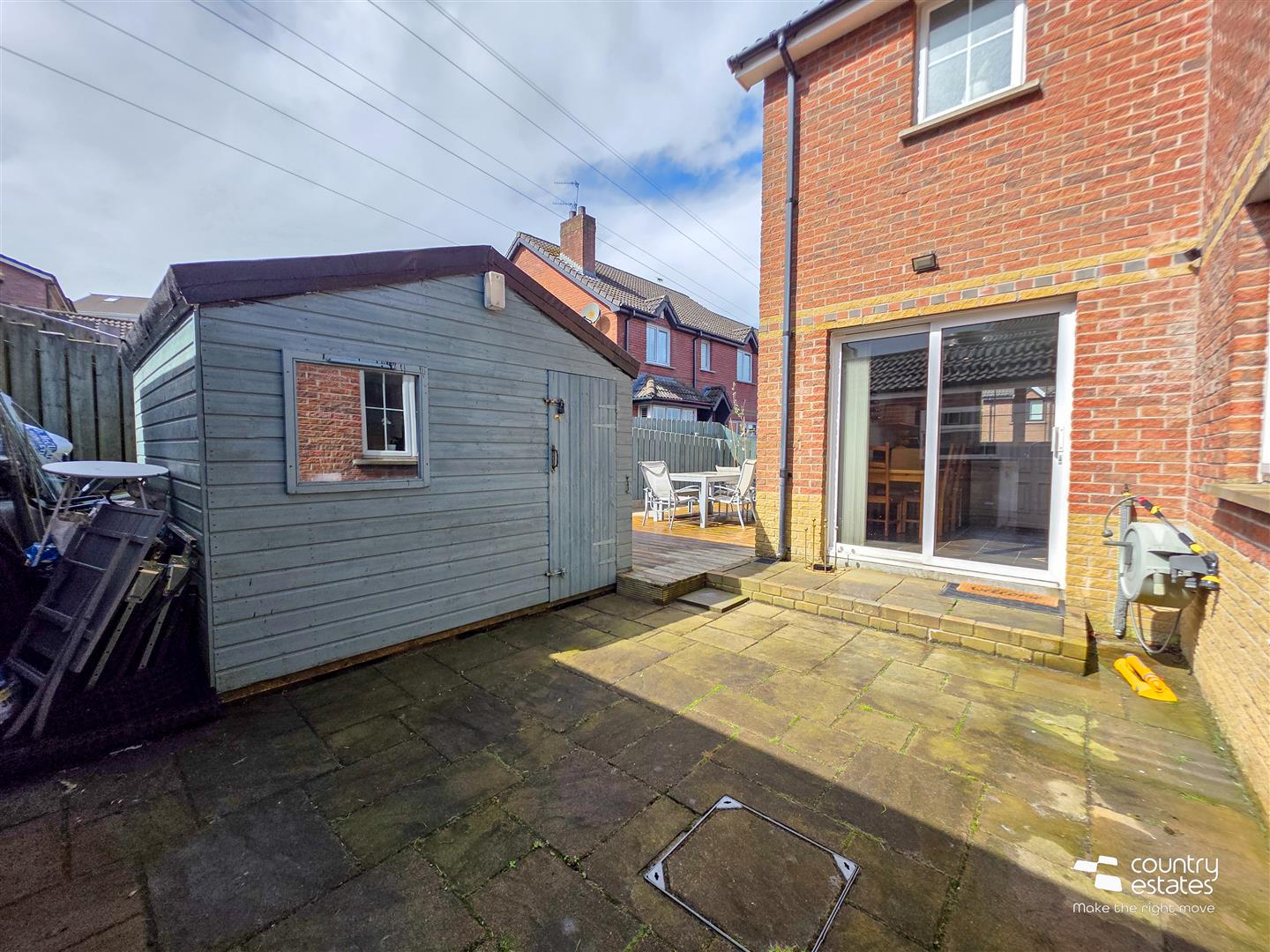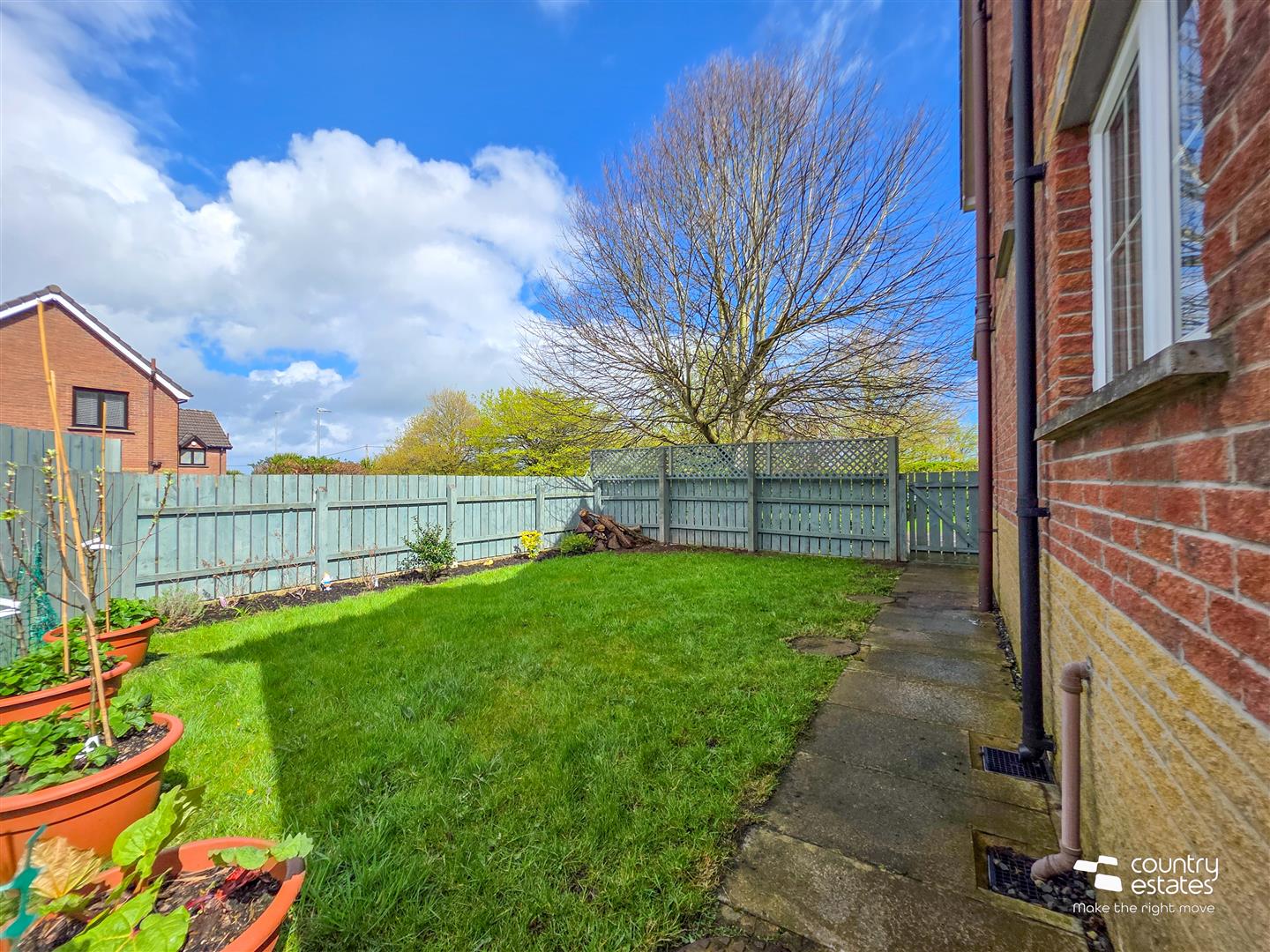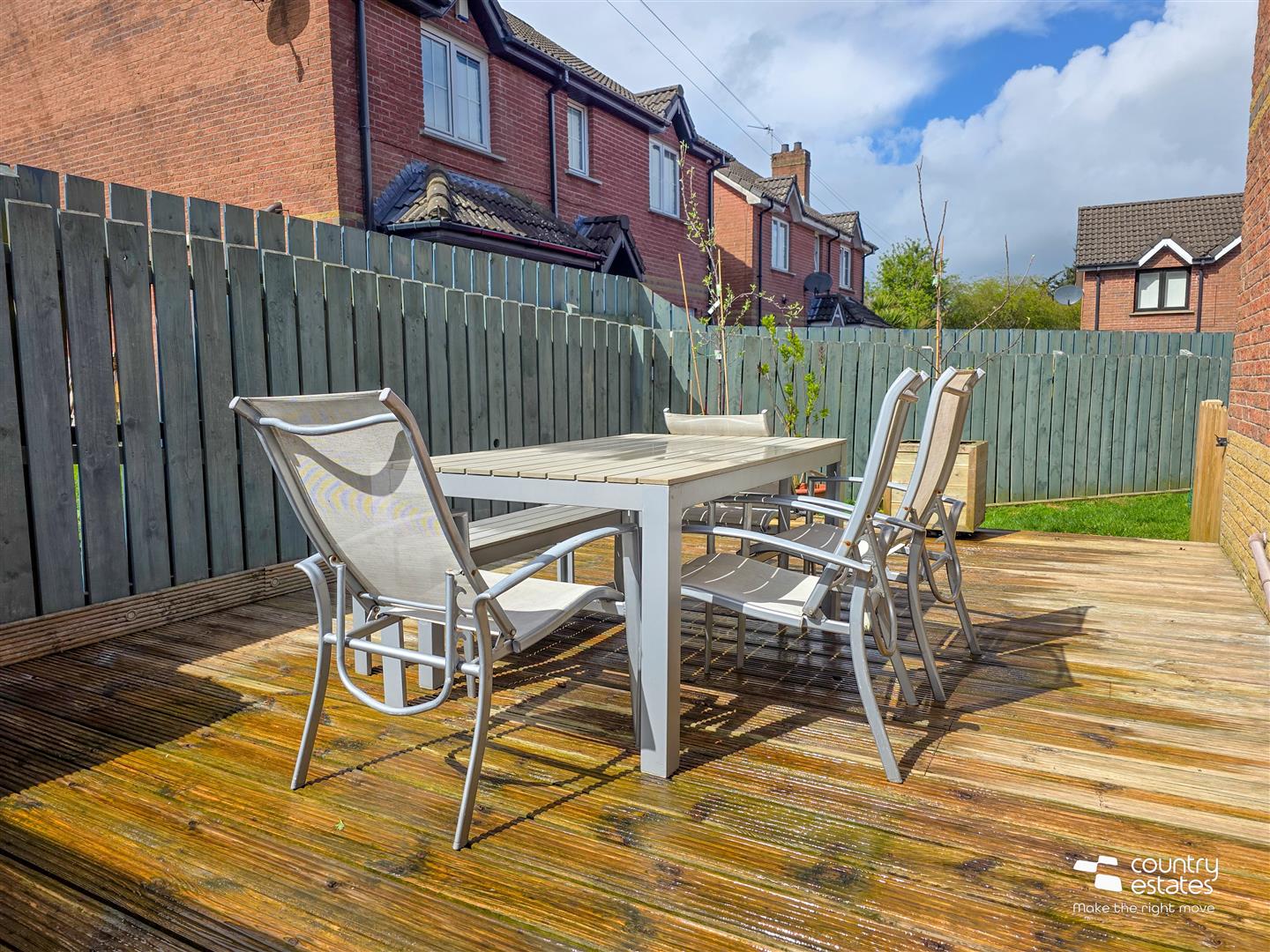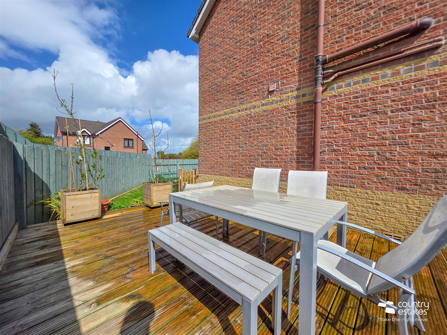 Low maintenance garden to rear with patio area and decking. Screened by perimeter fence. Private enclosed garden to side, laid in lawn and screened by perimeter fence.