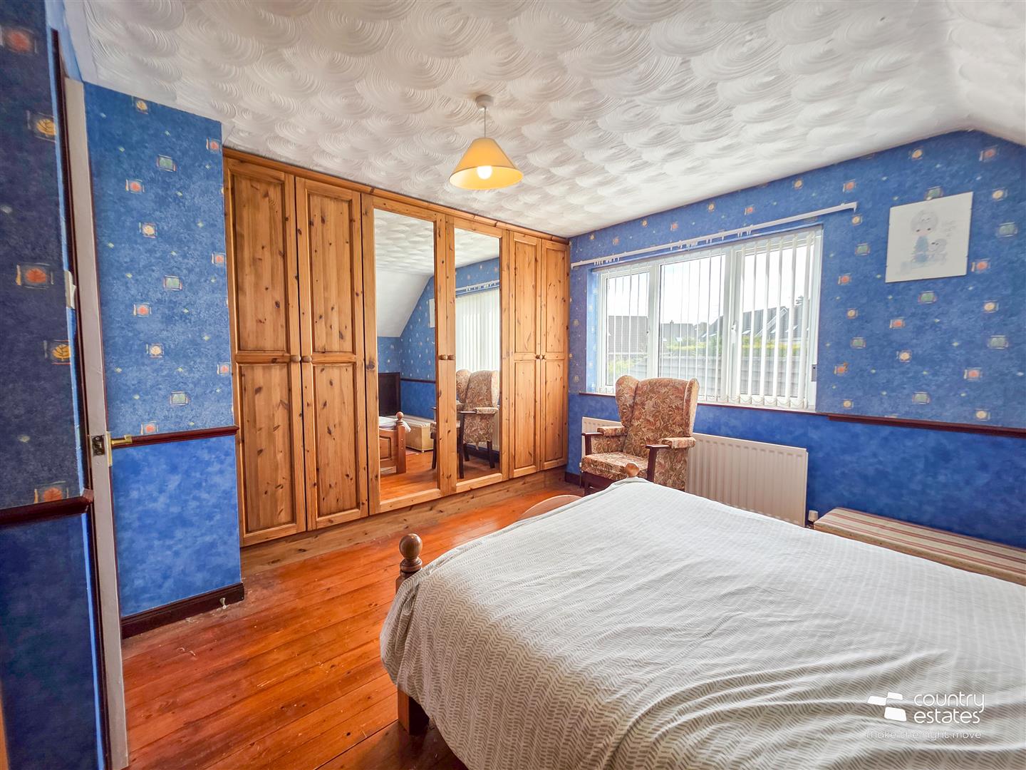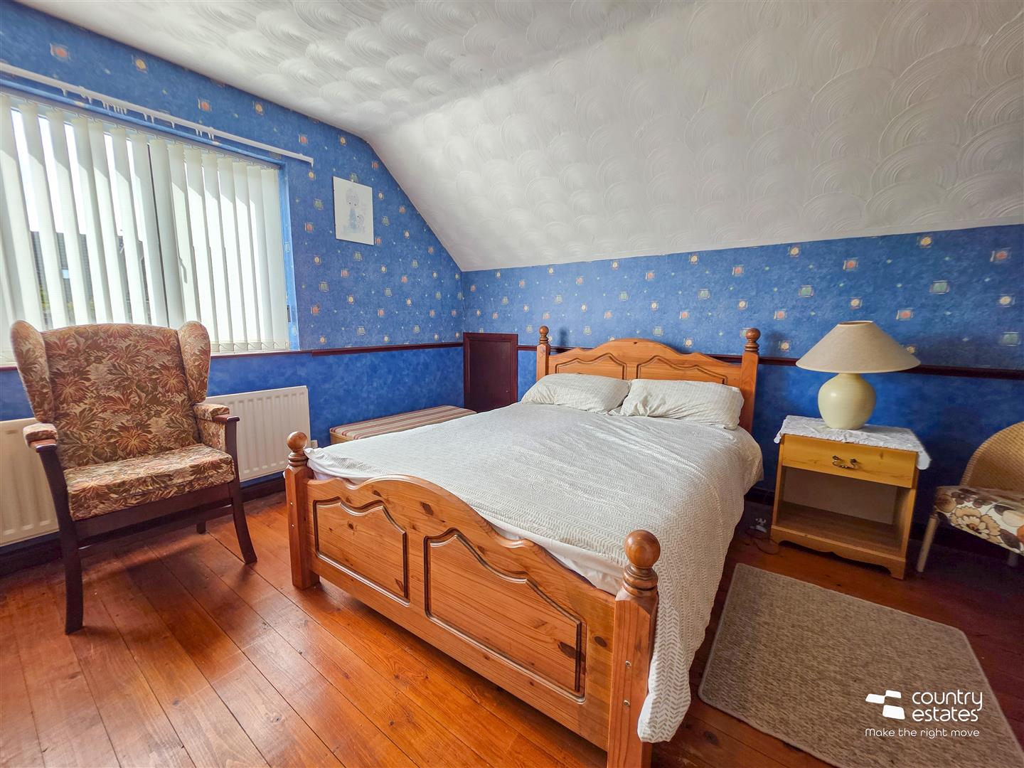 Exposed hard wood flooring. Storage to eaves.