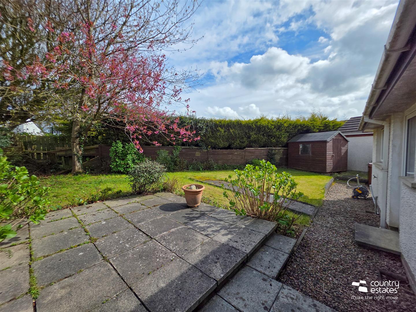 Private enclosed garden to rear, laid in lawn and screened by mature hedgerow. Stocked with a variety of mature shrubs. Paved patio area and pebbled walkways.