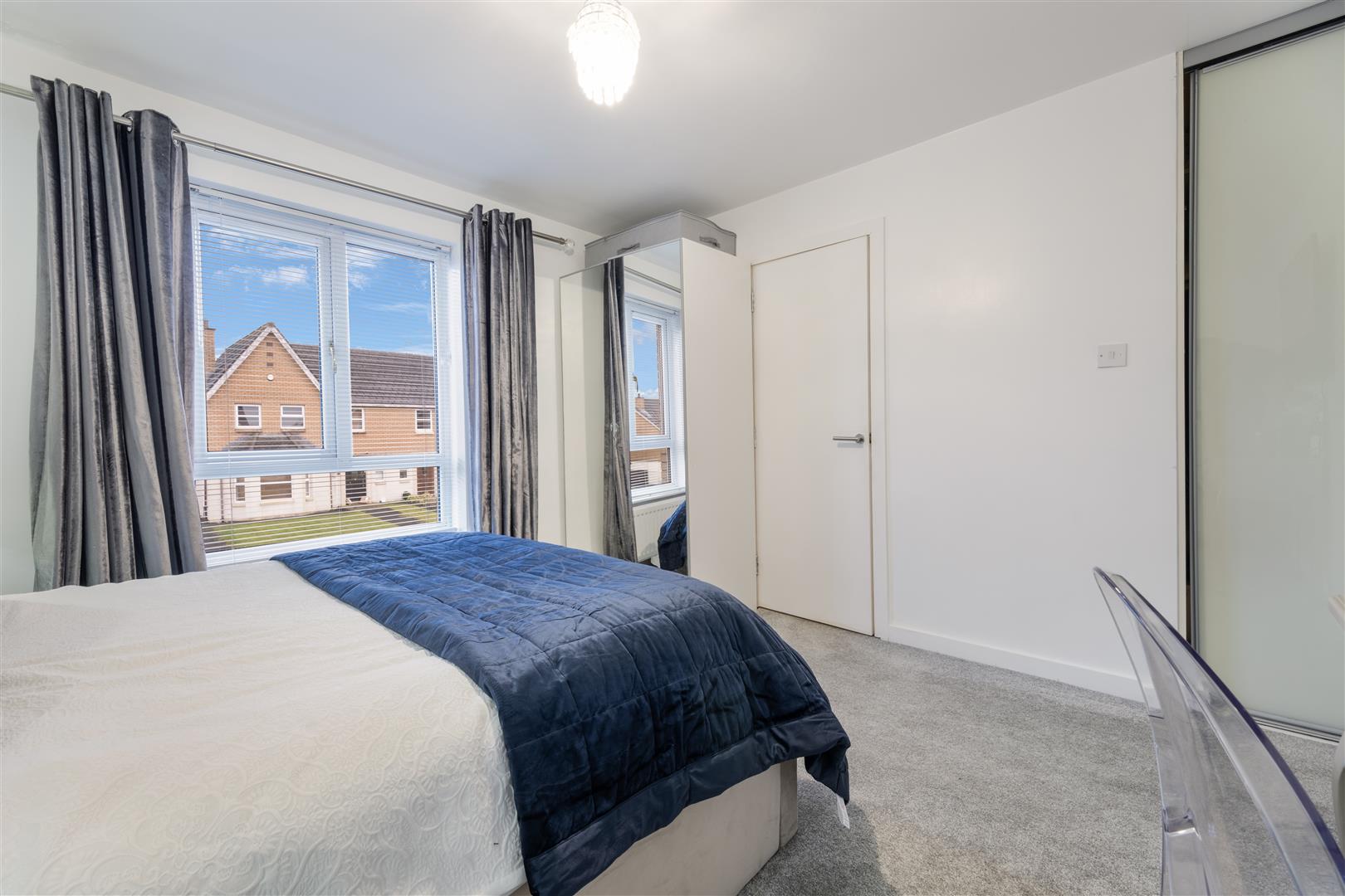 Spacious main bedroom with wall-to-wall mirrored sliding robes and front aspect window.