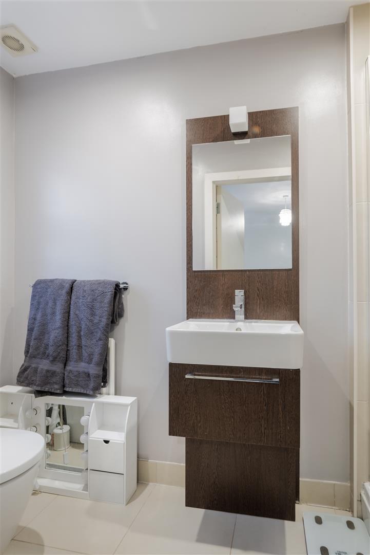 Downstairs WC with modern vanity unit and tiled floor.