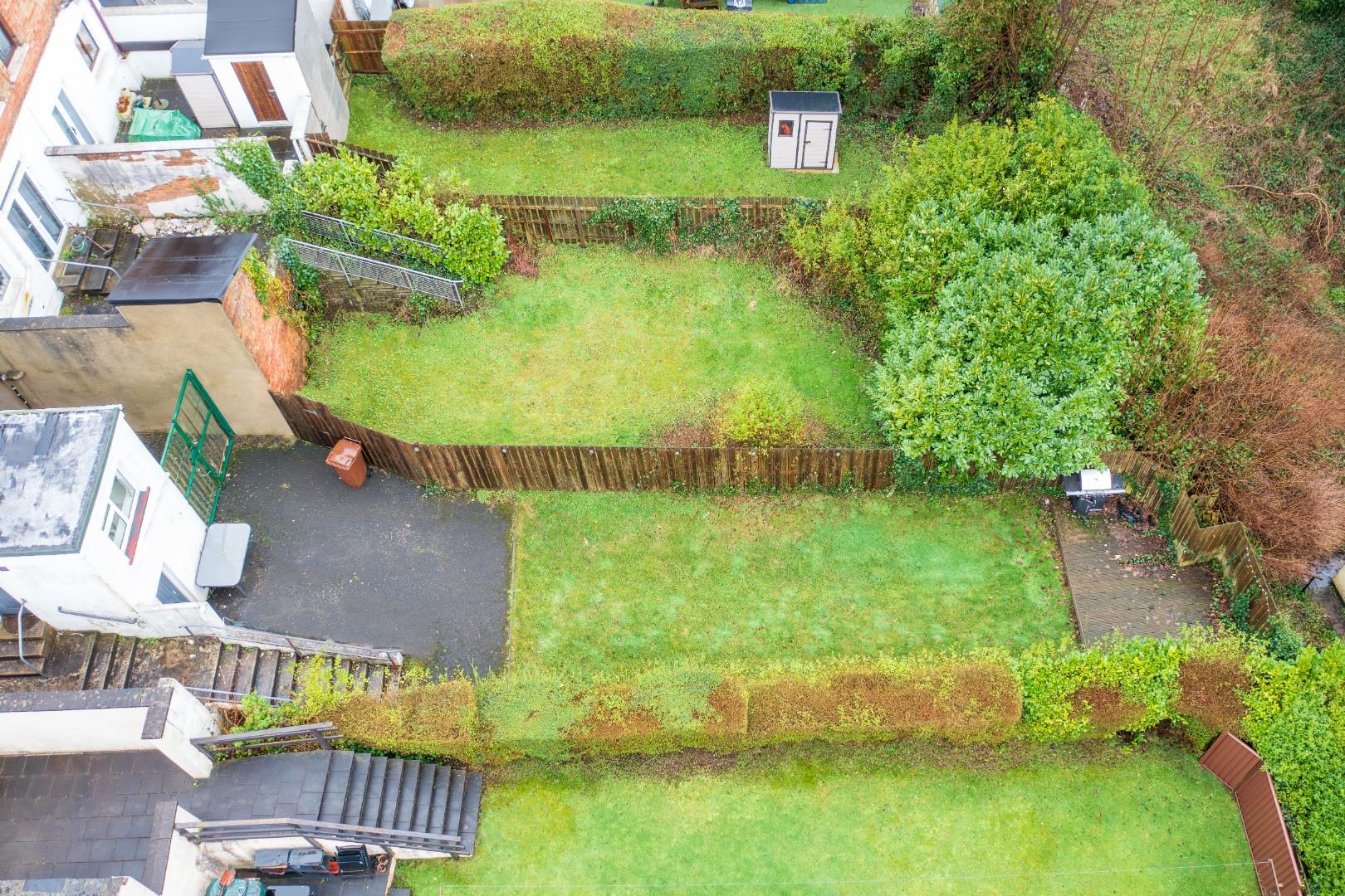ENCLOSED REAR GARDEN WITH LAWN AND PATIO