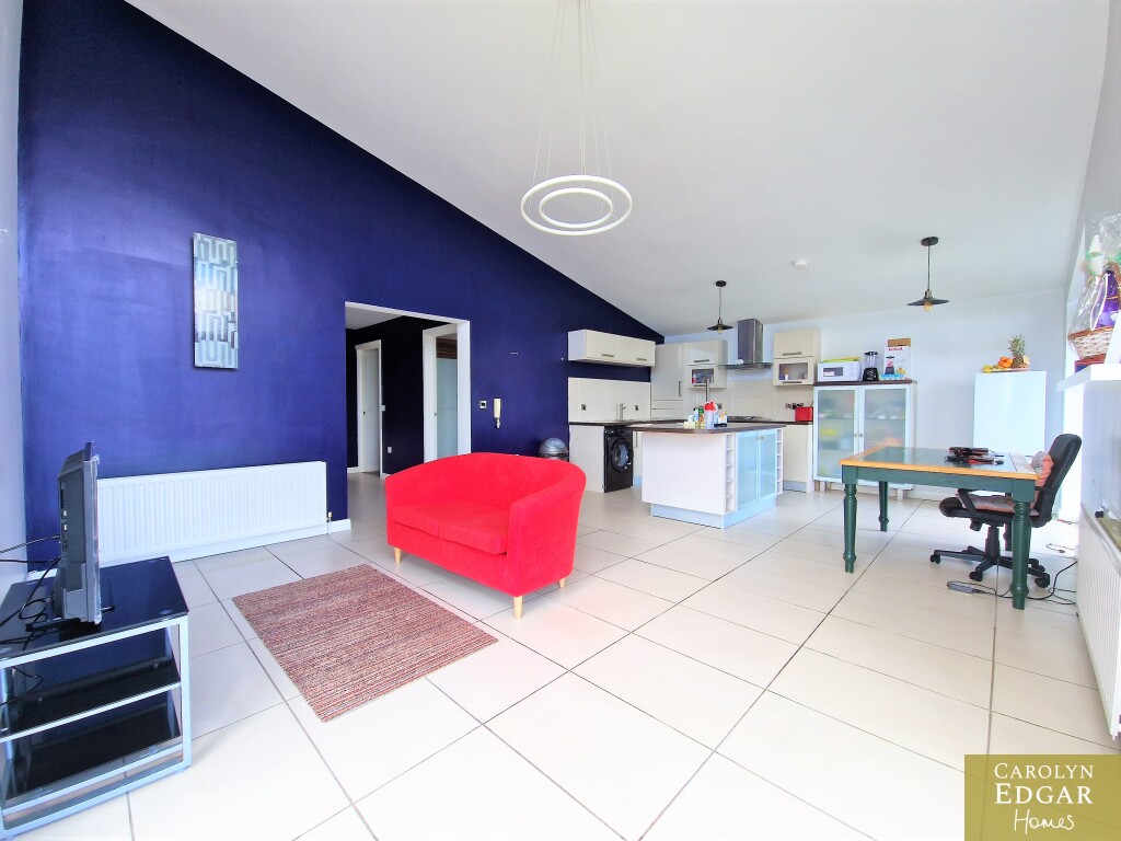 The accommodation comprises of an open-plan kitchen/dining/living area, two generous bedrooms inclusing a master en-suite and a white bathroom suite.