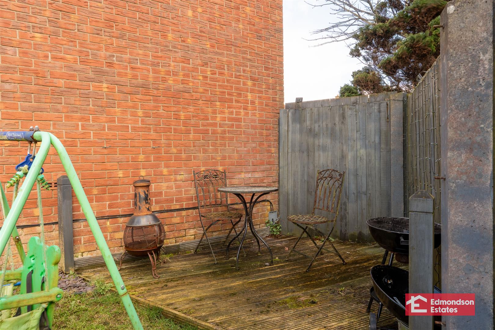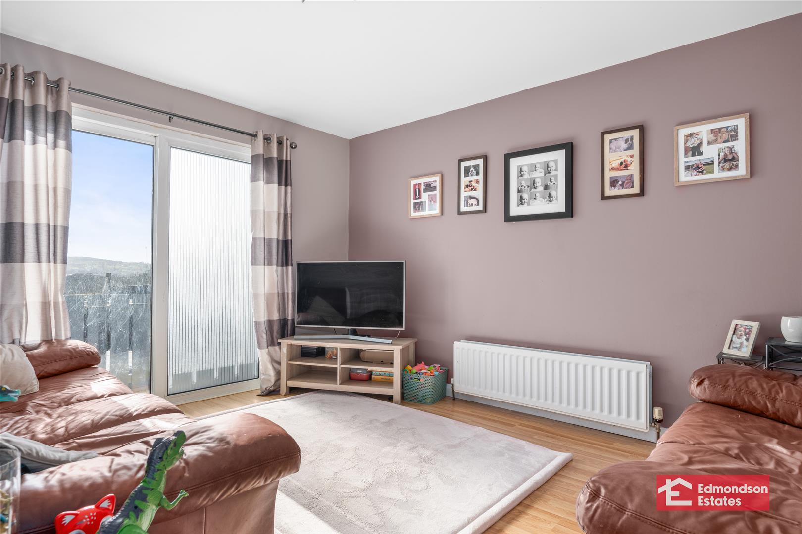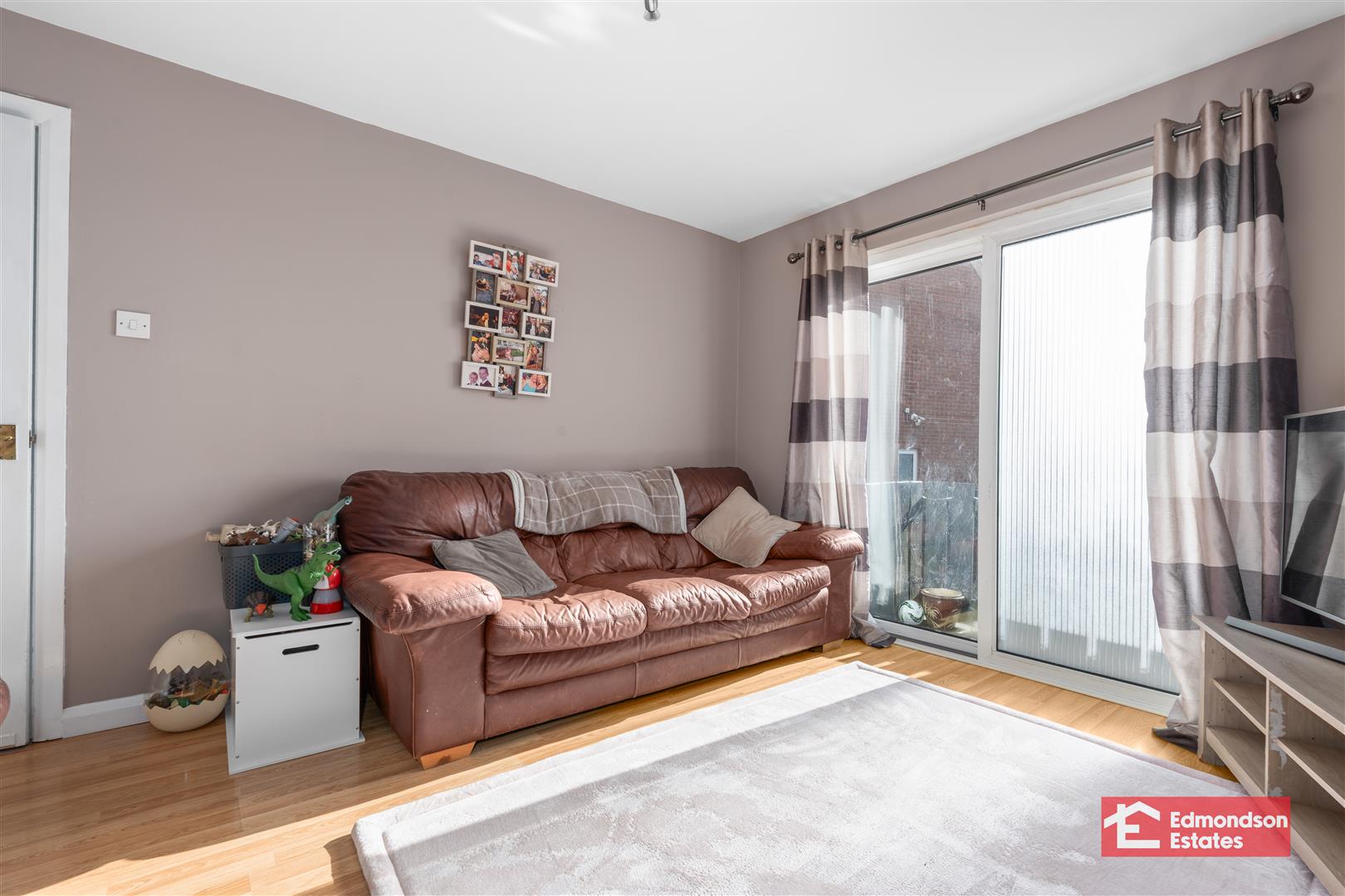 Wood laminate floor covering. PVC double glazed sliding patio door to rear garden.