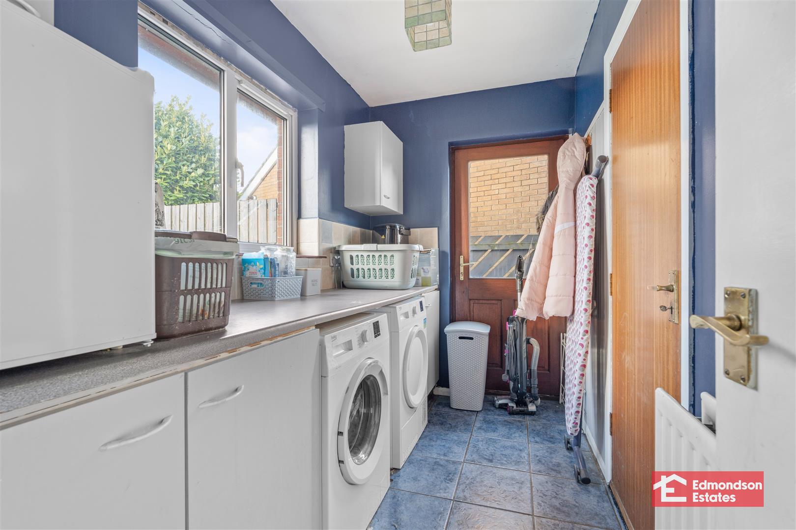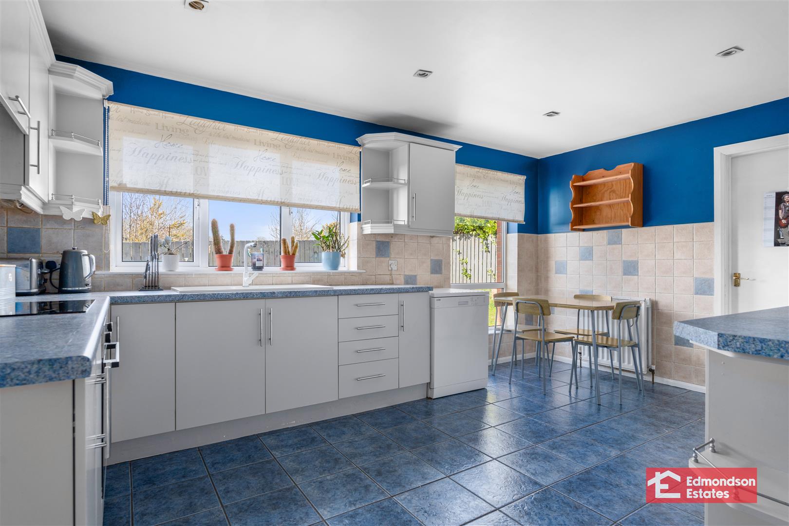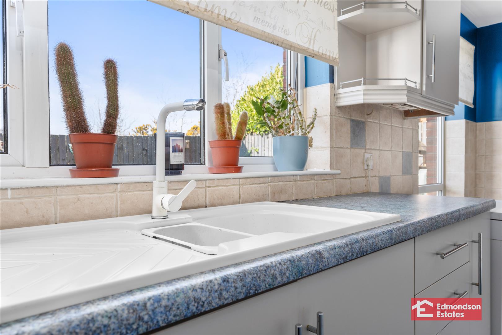 High and low level storage units and work surfaces. Space and plumbing for low level appliances. Hardwood double glazed side door. Internal door to integrated garage.