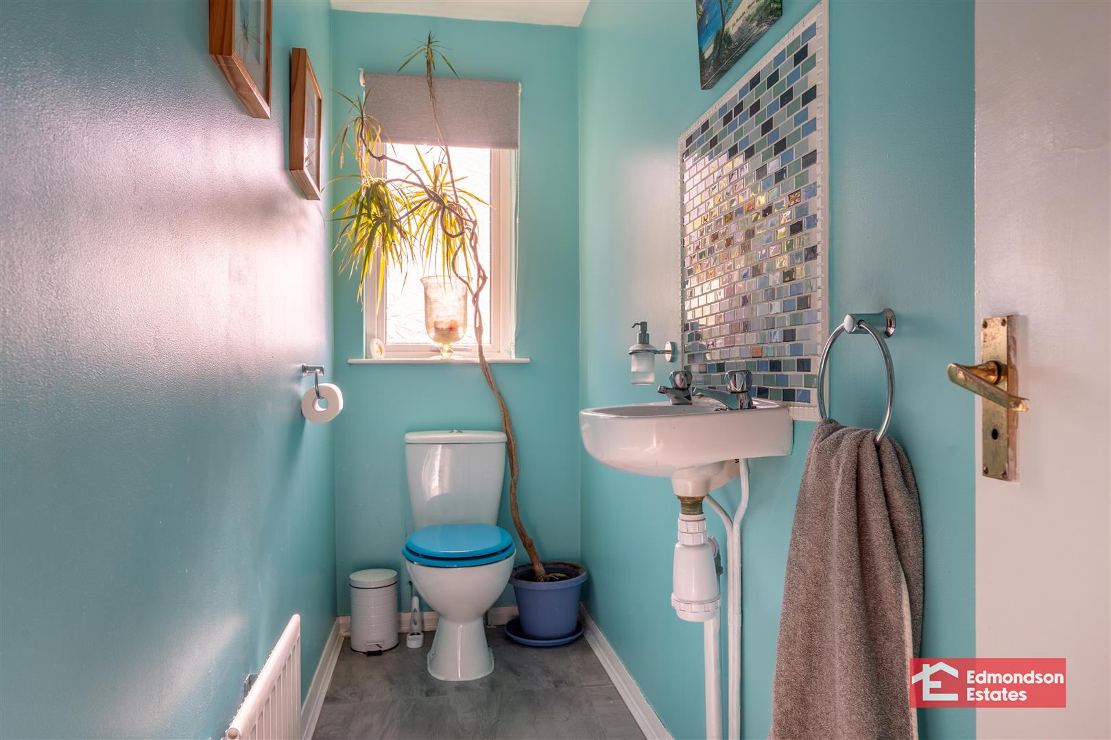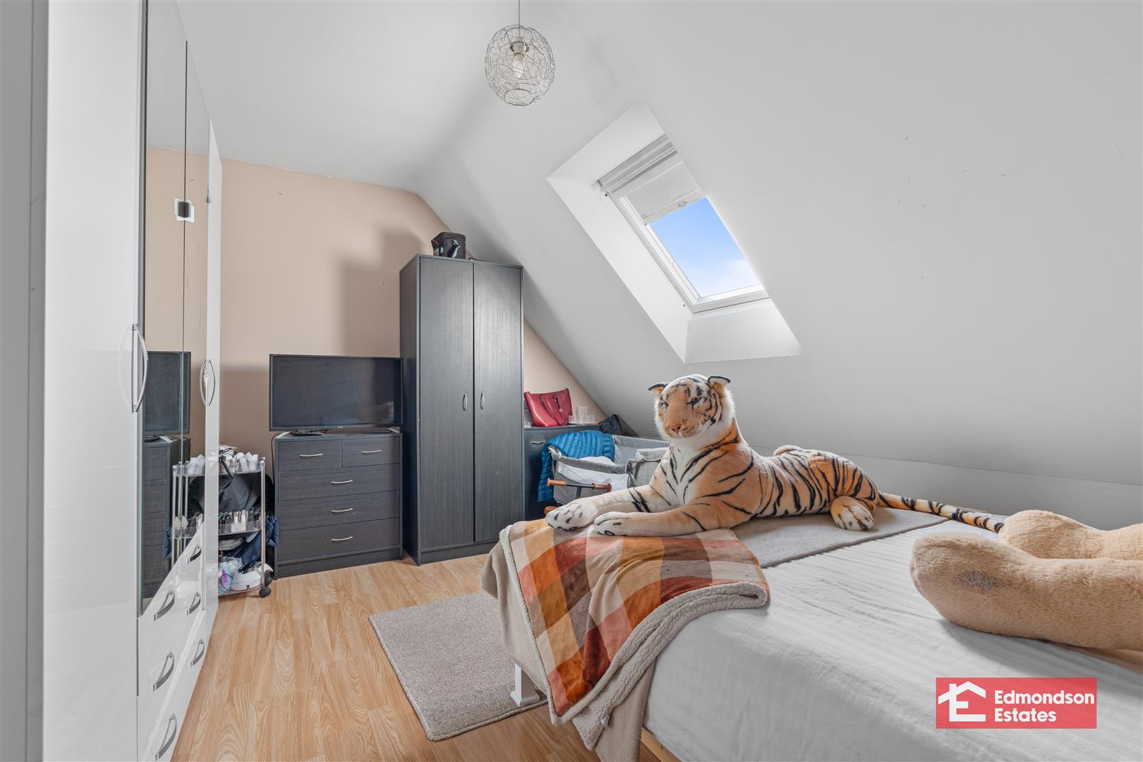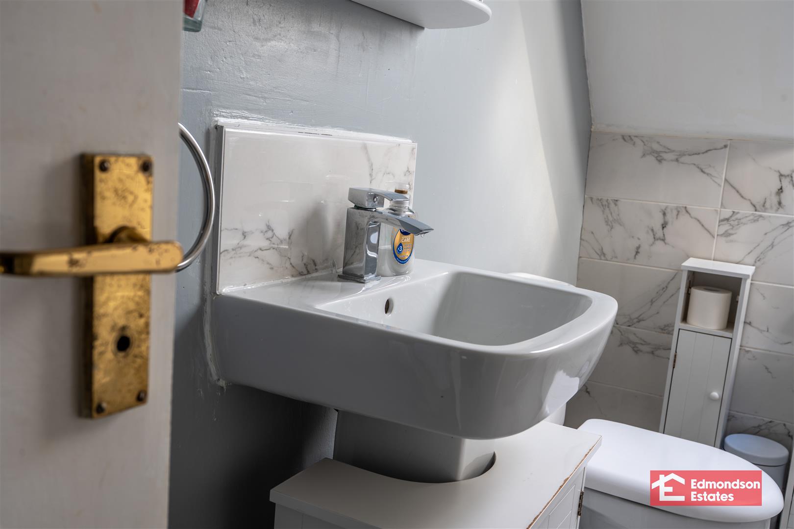 Modern fitted three piece suite comprising panelled bath, wash hand basin and WC. Fully tiled walls and tiled floor. Velux window.