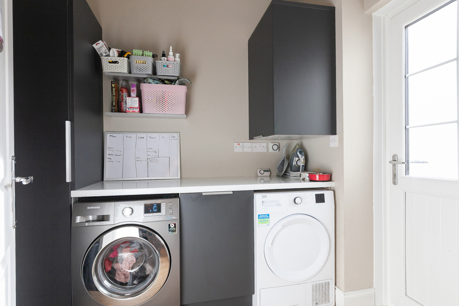 Comprises of high and low level units, plumbed for washing machine, space for tumble dryer and access to rear garden.